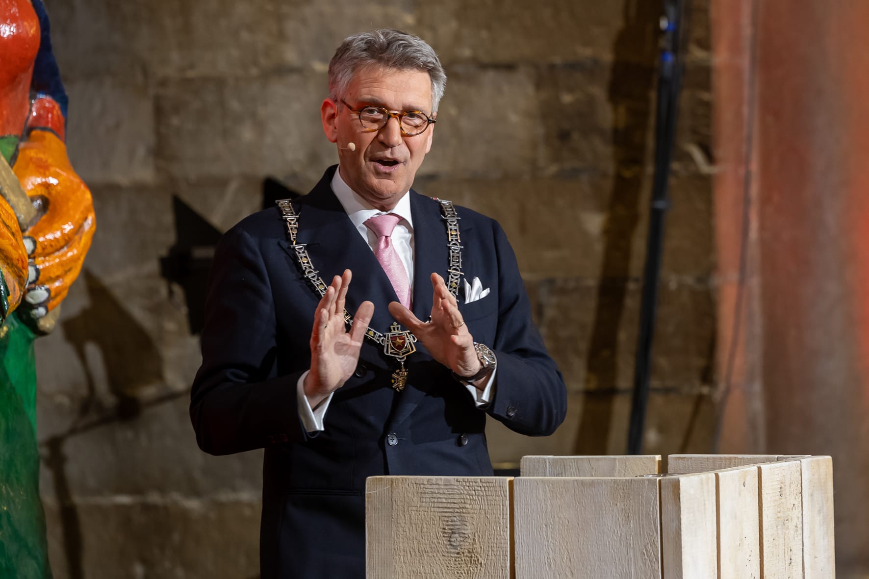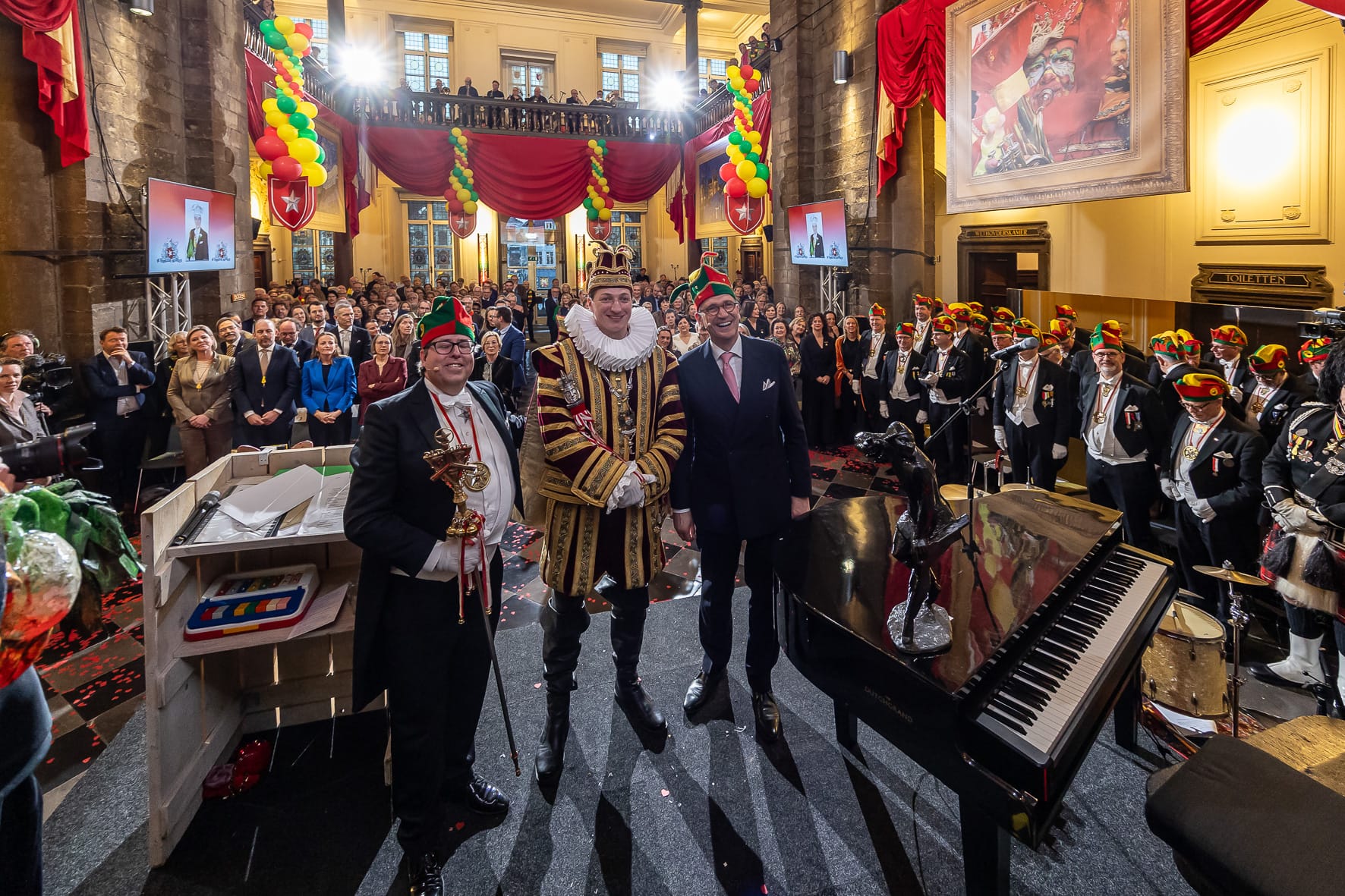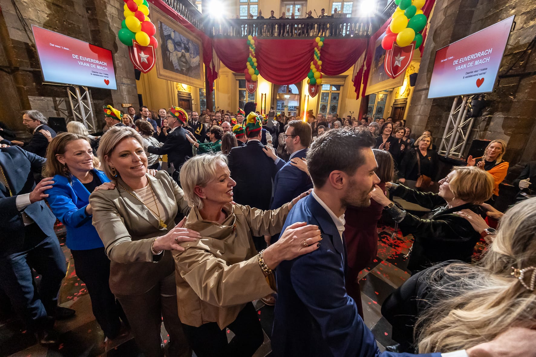 Met veel gevoel van twee kanten was de machseuverdrach in het stadhuis dit jaar ook 'ne groete merci aan John Aarts. Aarts werd gemist in het stadhuis, door het college, maar zeker ook door otoriteitetoeker Georges van Zeijl. Wethouder Aarts kon niet meer fysiek aanwezig zijn in het stadhuis als gevolg van zijn ziekte, waardoor hij nog maar weinig lucht heeft.