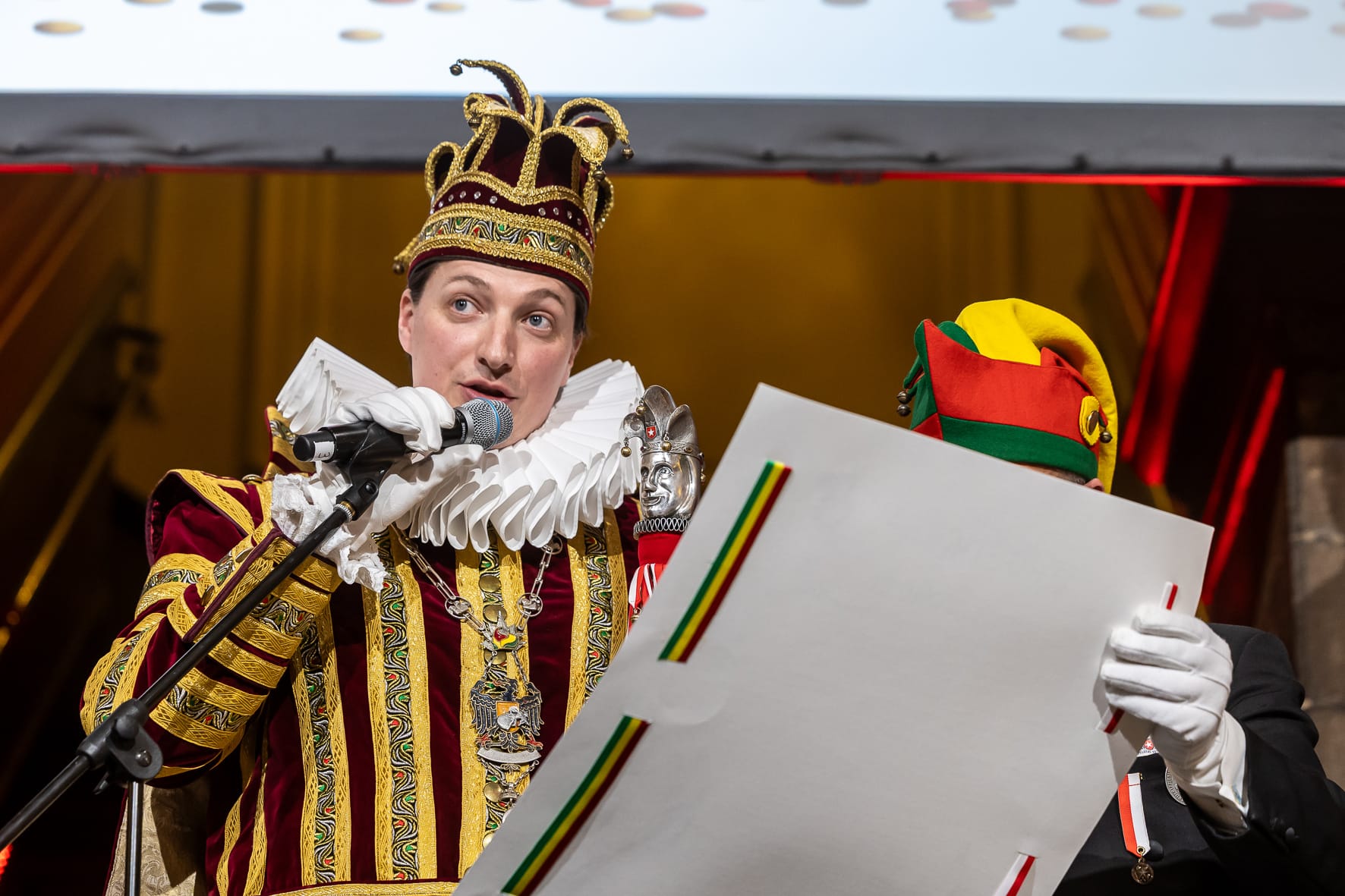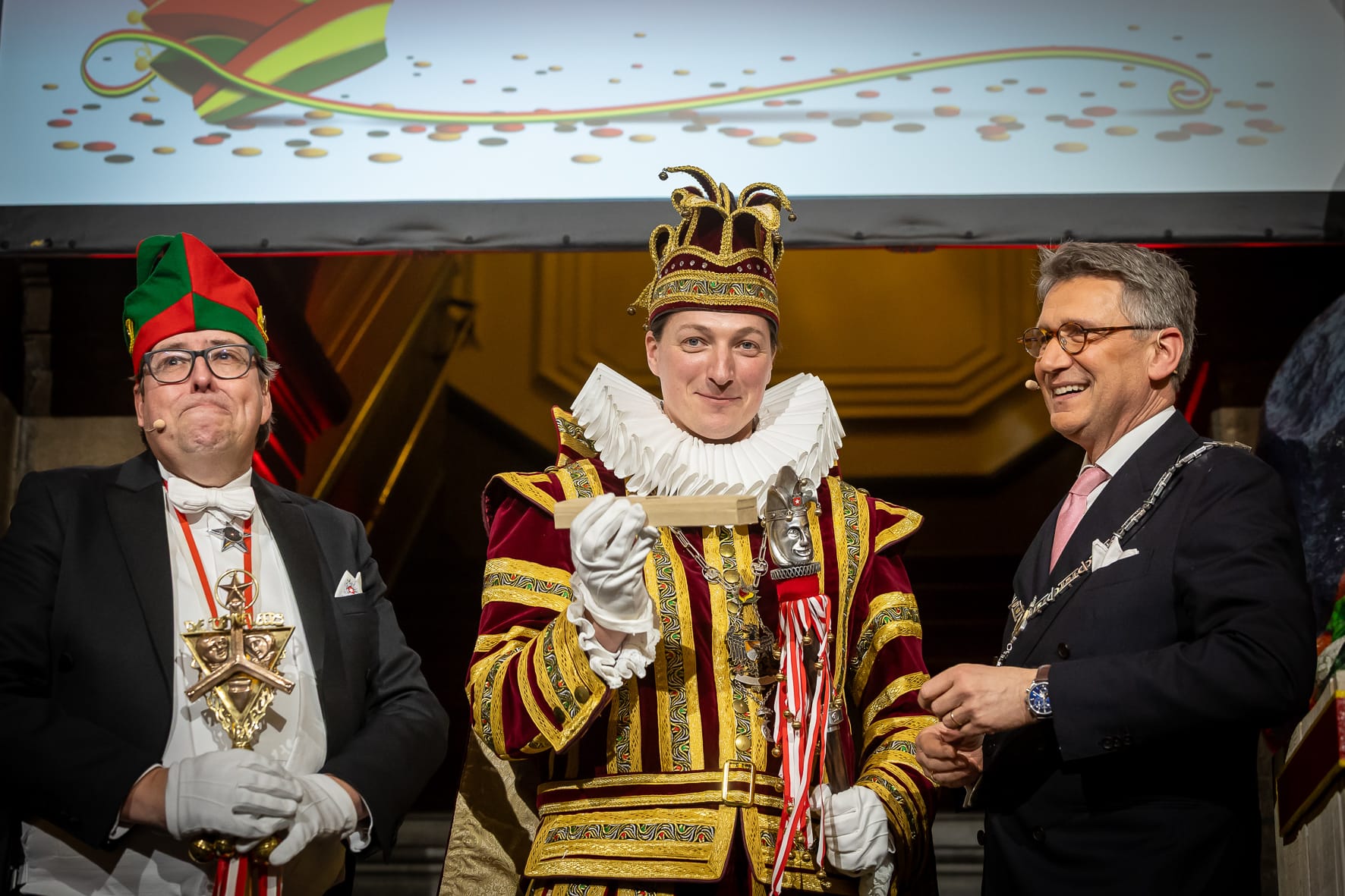 Prins Lloyd d'n Ierste kon niet wachten om de scepter van de burgemeester over te nemen. Die scepter staat symbool voor de macht over de stad. Gelukkig maar dat dat goed ging, want of de sleuteloverdracht gelukt is, we zullen het nooit weten. De burgemeester gaf Lloyd d'n Ierste wel een doosje, waar misschien wel maar misschien ook niet de sleutel in zat.