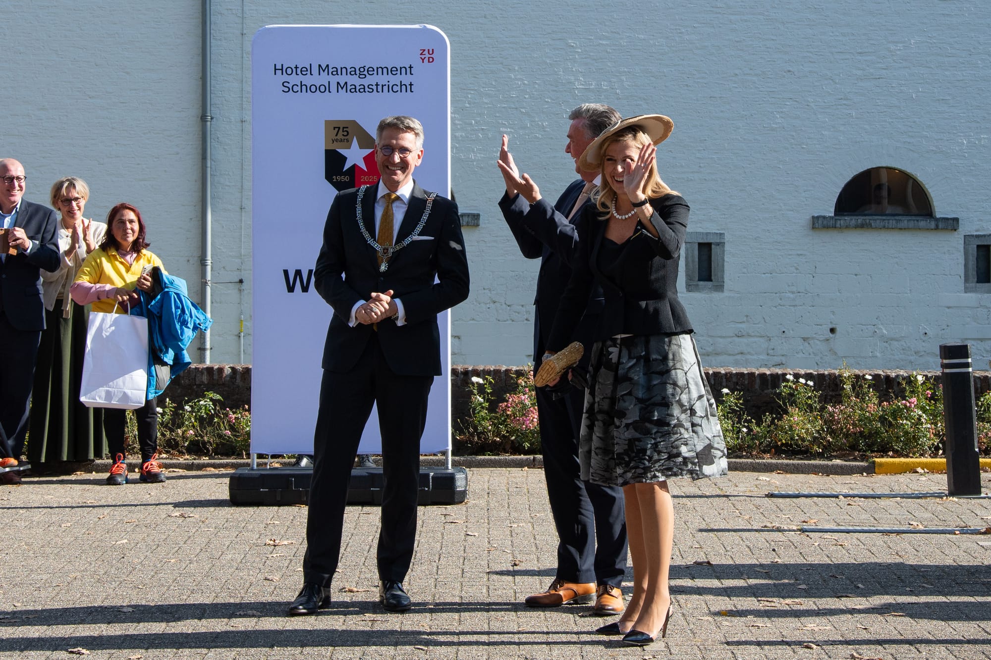 Hoog bezoek donderdag in Limmel. Koningin Máxima bracht een bezoek aan de Hotel Management School Maastricht, beter bekend als de hotelschool. De school viert het 75-jarig jubileum.