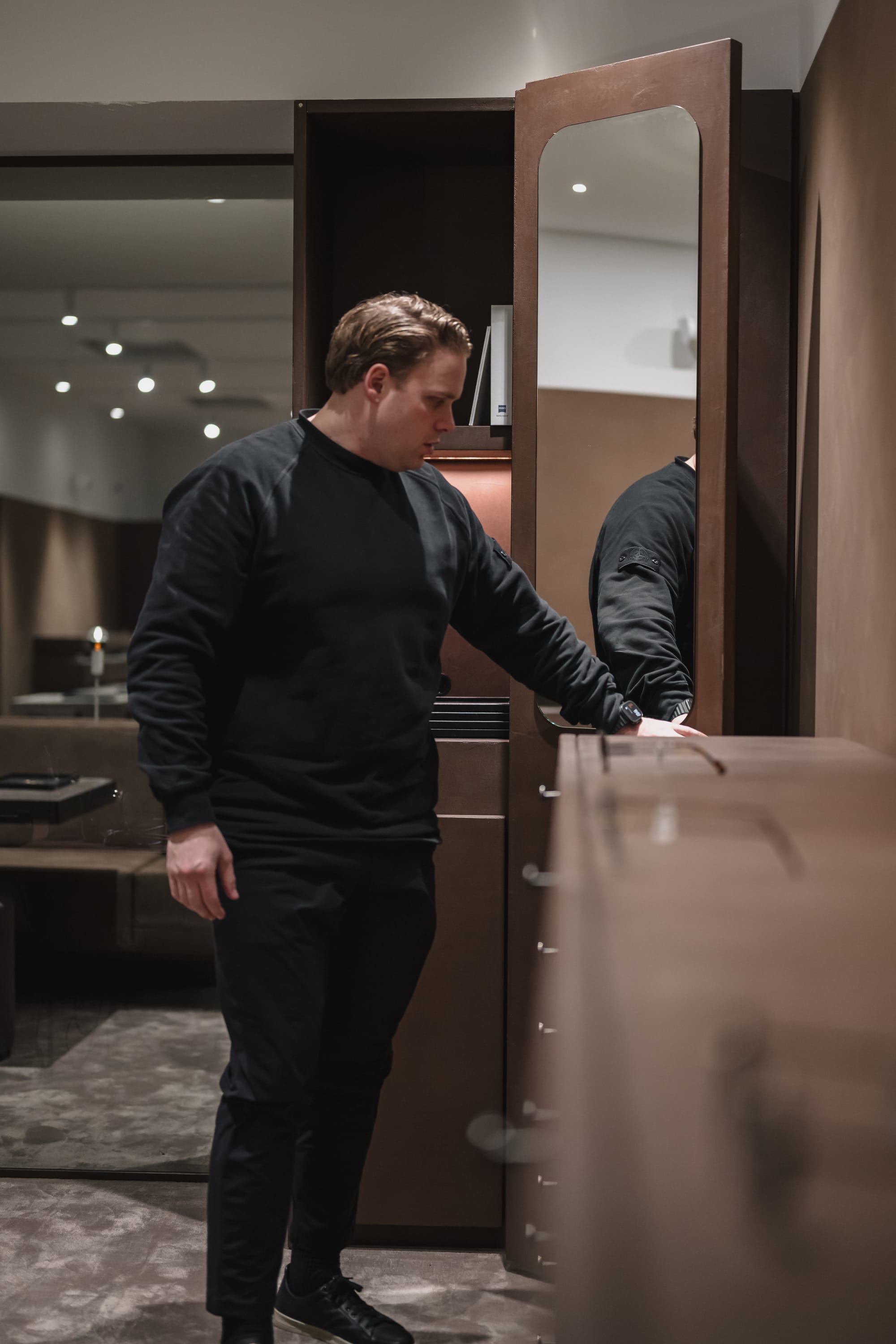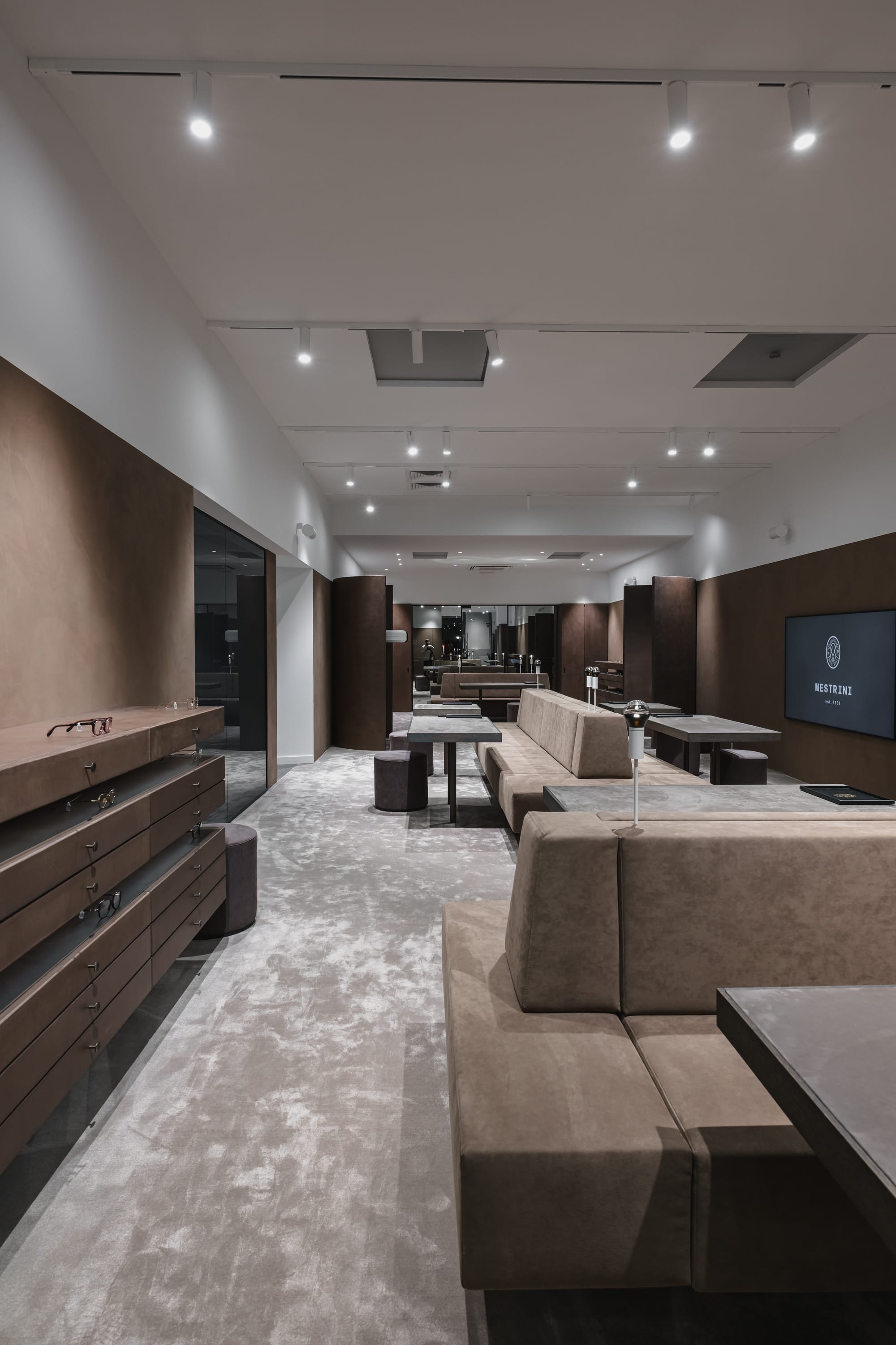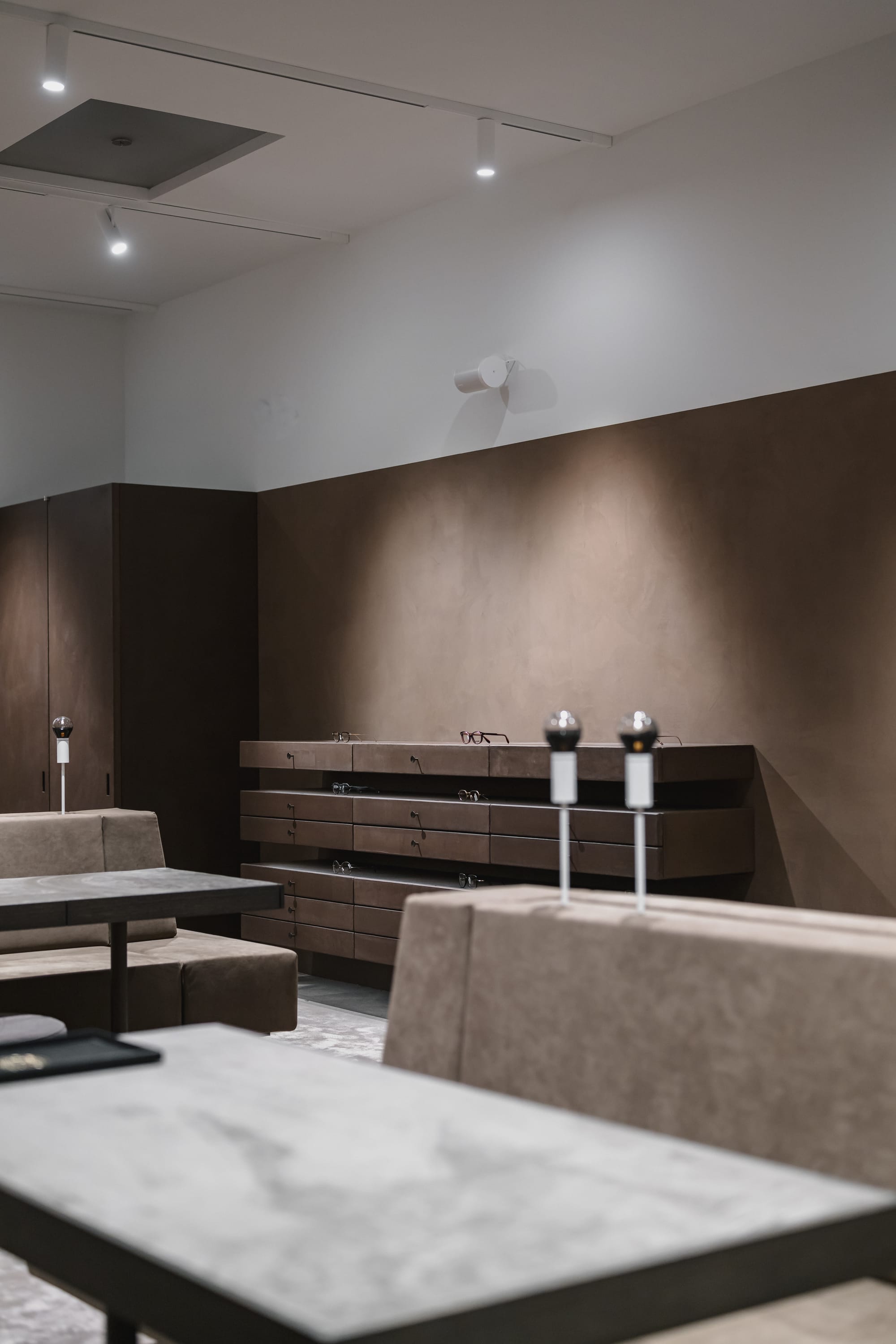 Onder leiding van ontwerper Maier ging het complete interieur op de schop met als doel meer rust te creëren, meer ruimte te bieden voor de klanten. MESTRINI is in dat opzicht geen traditionele optiek. Je vindt er geen rekken met monturen aan de muren waar je zelf kunt kiezen. De meeste monturen liggen in lades die één geheel vormen in het interieur. Jules: “De aandacht van onze opticiens en optometristen moet uitgaan naar de klant. We willen met het nieuwe interieur zo weinig mogelijk afleiding en zo veel mogelijk plekken waar met de klant in alle rust een nieuw montuur kan worden gekozen.”