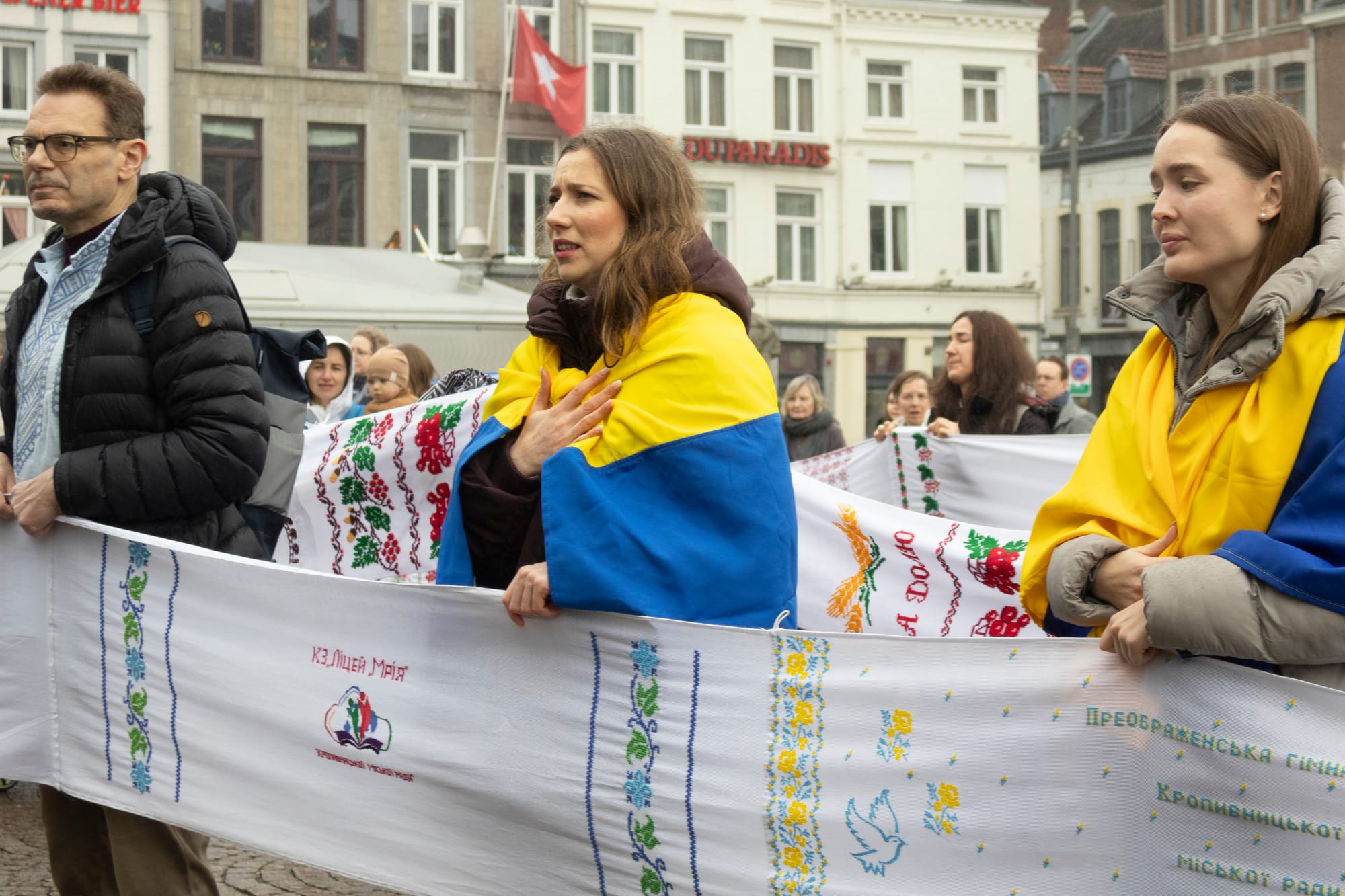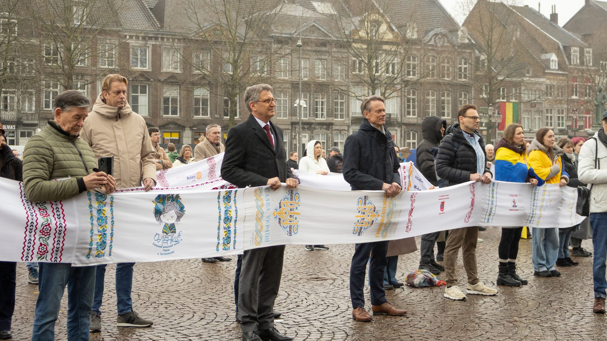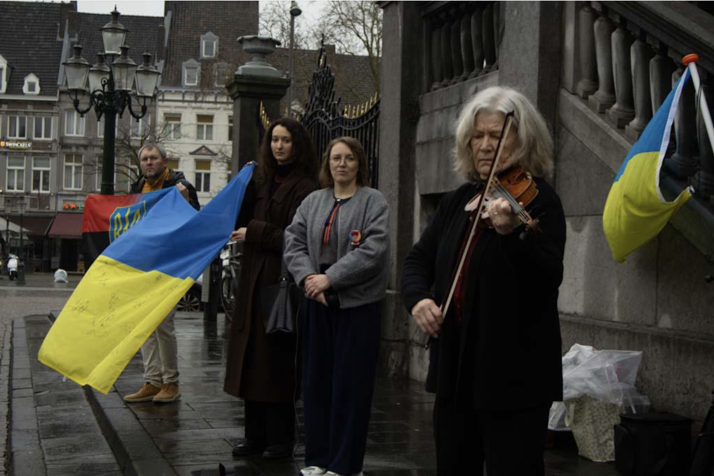 Om 12.00 uur was er een minuut stilte op de Markt voor de vermoorde en gesneuvelde Oekraïners sinds de Russische inval exact vier jaar geleden.