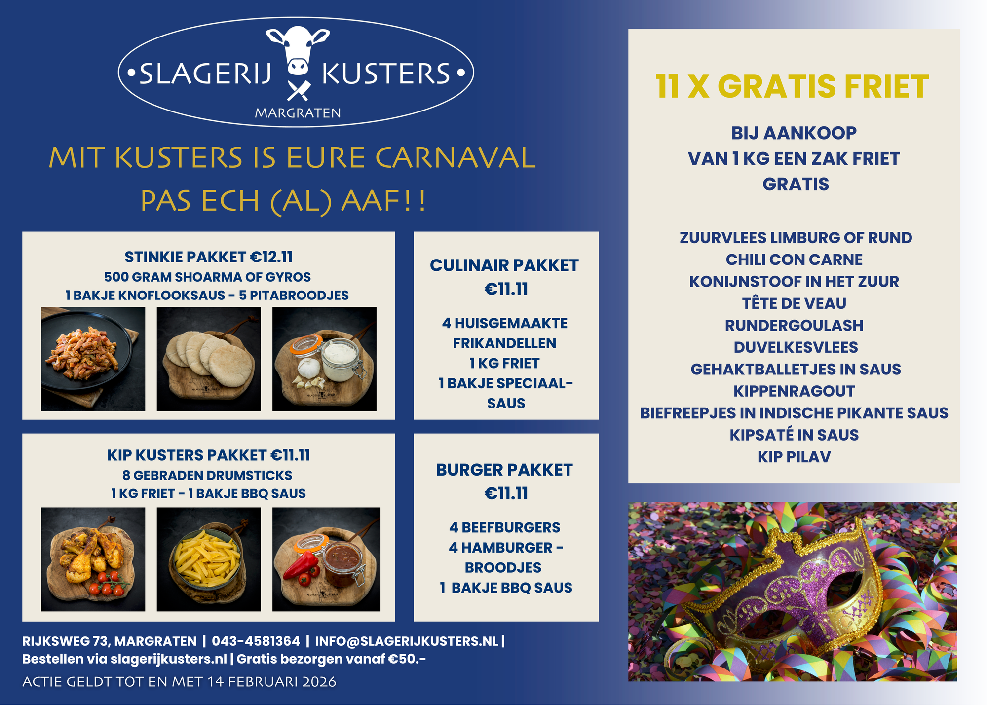 bij aankoop van 1 KG (keus uit onderstaande) een zak friet gratis
