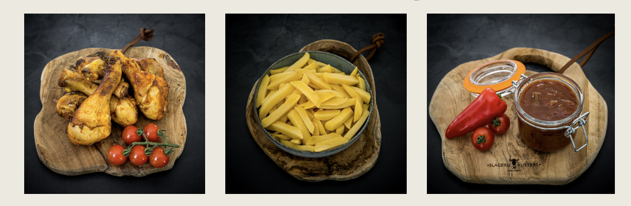 8 GEBRADEN DRUMSTICKS - 1 KG FRIET - 1 BAKJE BBQ SAUS