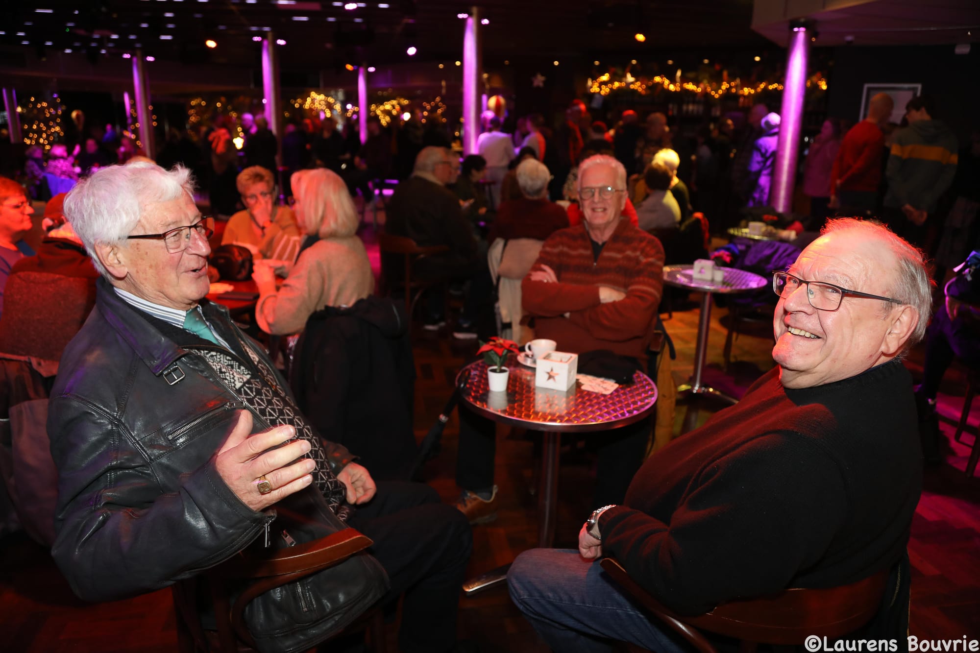 Op de ‘achtergrond’ geniet Maggie Kooman mee van wat deze druilerige decemberavond door de initiatiefnemers, vrijwilligers en deelnemers wordt losgemaakt.