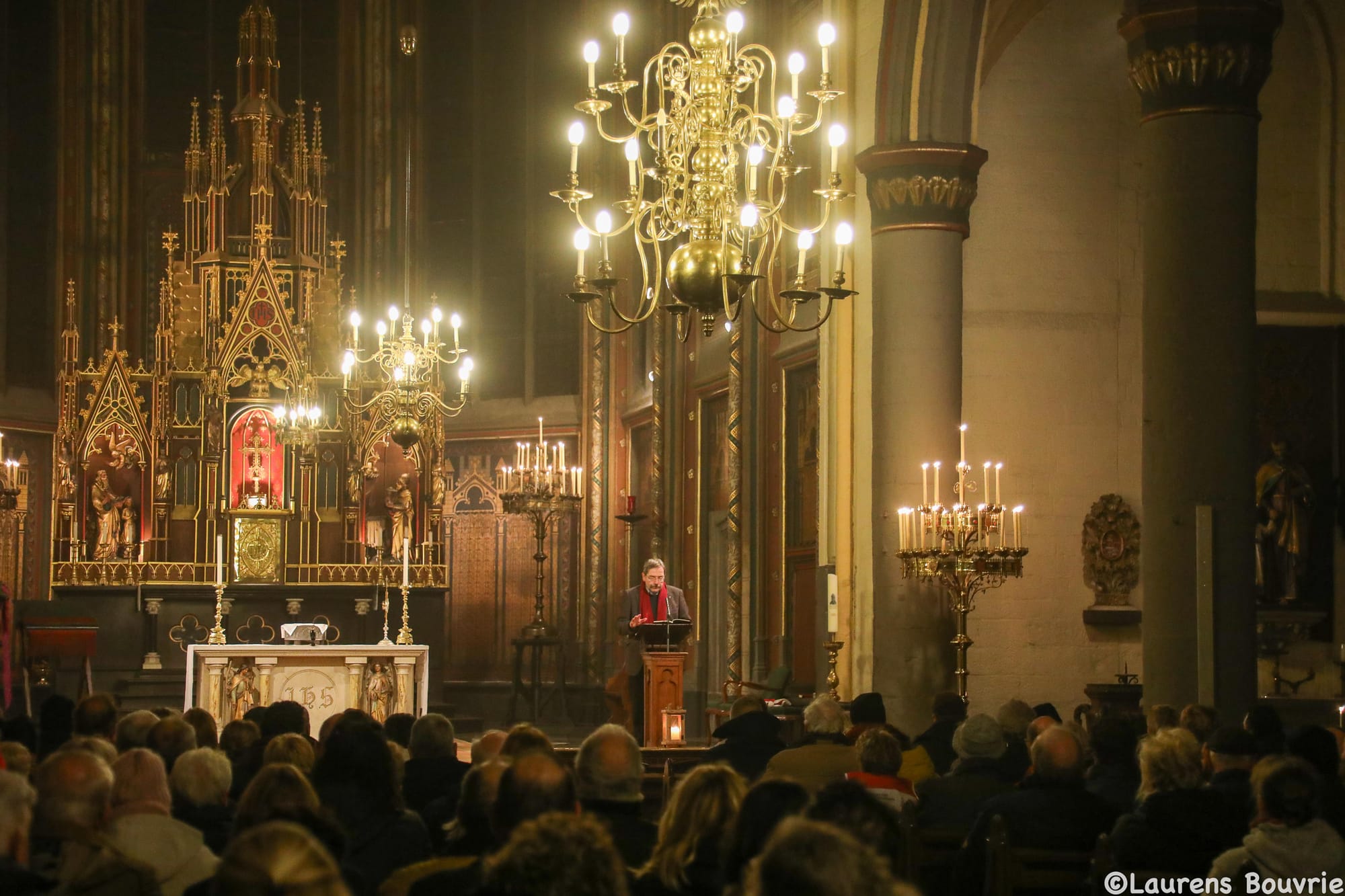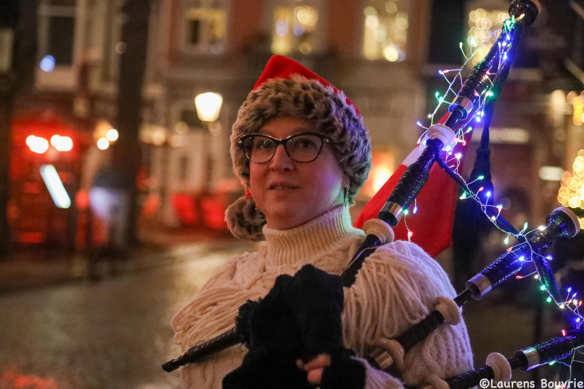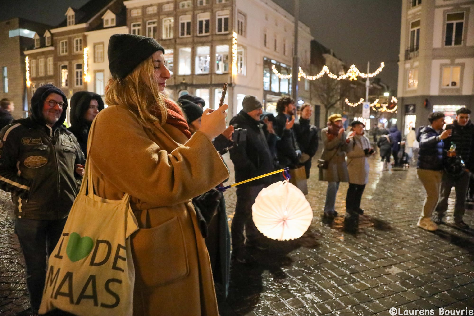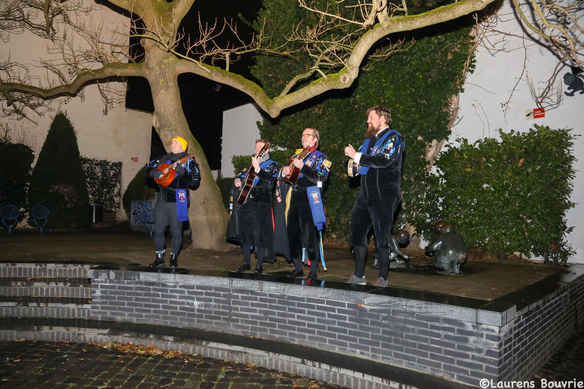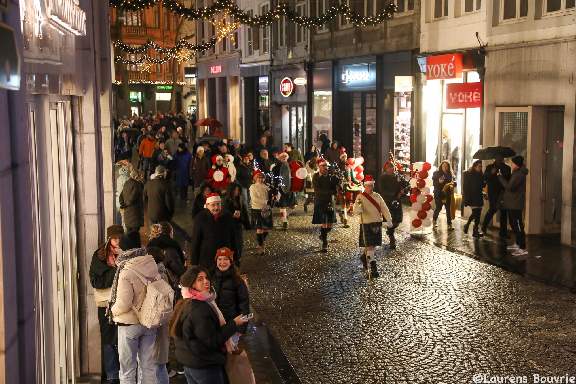 Wellicht onbedoeld maar wel zeer prettig is dat de wandeling van de Keersnach vaan ’t Hart op deze waterkoude zaterdag niet alleen bij de deelnemers een warm gevoel geeft. De stoet die, vanaf de Brusselsestraat via het Sint Servaasklooster en de Lenculenstraat een eerste stop maakt bij de huivende (red: knikkerende) kinderbeeldengroep op de hoek van de Witmakerstraat en Hondsstraat, geeft ook passanten in de gezellig drukke binnenstad een extra kerst-emotie mee. De eerdergenoemde Maastricht Pipers wisselen met Tuna Universitaria de Maastricht elkaar af om de tocht muzikaal te omlijsten. Beide groepen passen perfect in de sfeer van de eeuwenoude straatjes en pleinen die in de route zijn opgenomen. En dan zijn er nog de verhalenvertellers. Laat Jan Janssen uit eigen koker op eigen sappige Mestreechter wijs zijn verhalen tot leven komen voor de Slevrouwebasiliek en bij de Cellebroederskapel. Oud-gouverneur Theo Bovens doet zijn verhaal vanaf het altaar in de Sint Mathijskerk aan de Bosschstraat.