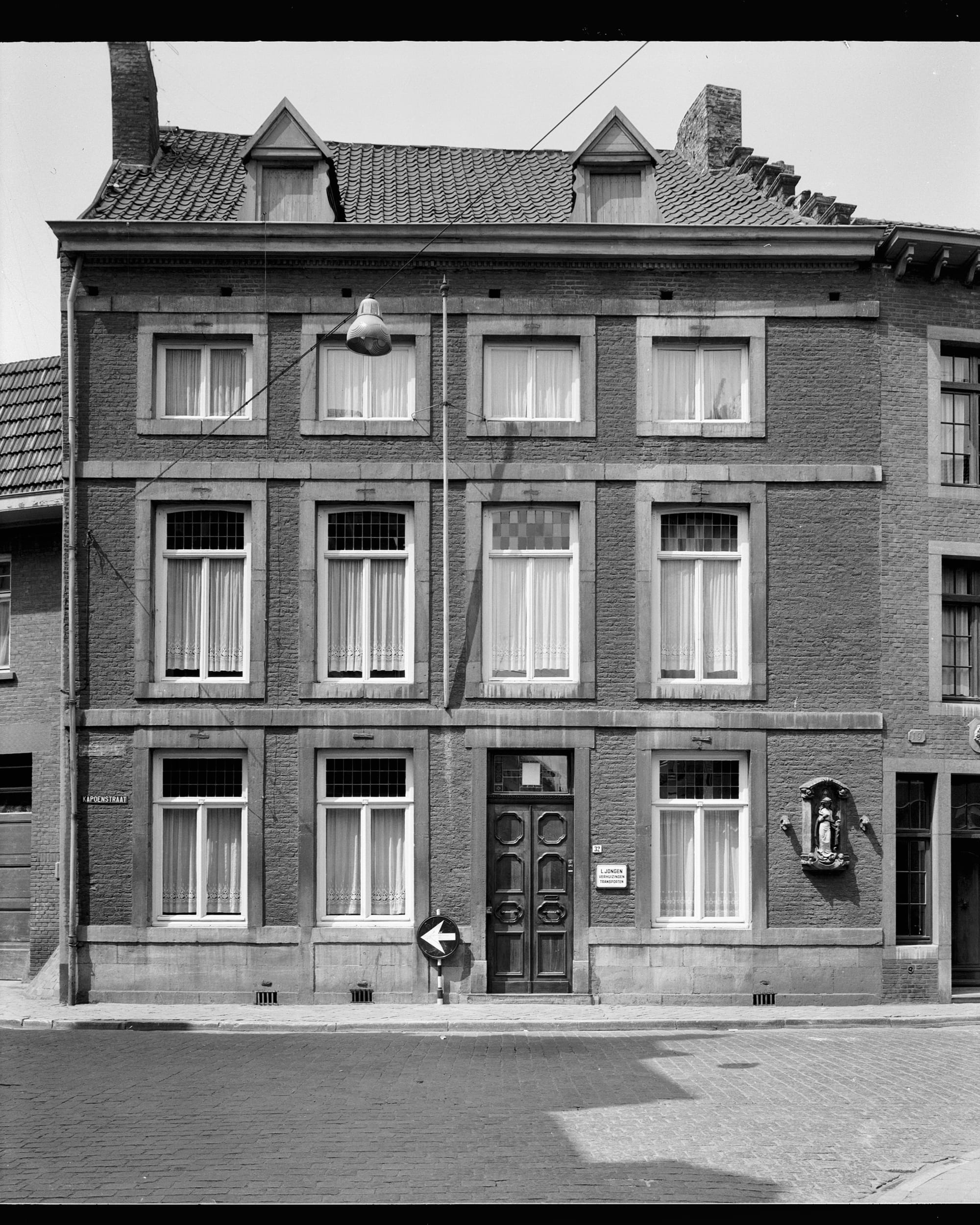 In mei 1962 liep fotograaf G.Th. Delemarre naar de Witmakersstraat en maakte vanuit die straat een foto van het imposante pand in de Kapoenstraat 32. Tegenwoordig is hier de ingang van Restaurant Petit Bonheur te vinden. Deze maand, op 29 december om precies te zijn, is het exact dertig jaar geleden (1995) dat de in 2018 overleden Jef Collijn de zaak overnam. Het restaurant is, evenals het bijbehorende hotel, nog steeds eigendom van de familie Collijn. Toen de foto werd gemaakt, was het pand niet in gebruik als een horecagelegenheid. “L. Jongen Verhuizingen Transporten”, zo luidt de tekst van het naambord aan de gevel. Dit bedrijf was onder meer gespecialiseerd in het verhuizen van piano’s.