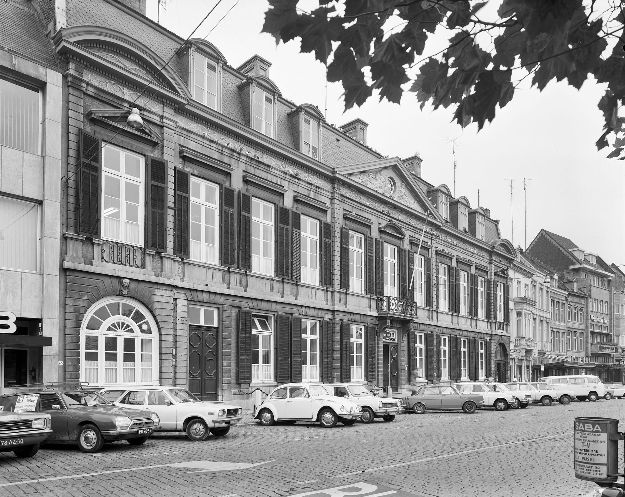 Deze foto werd in november 1974 gemaakt door fotograaf Gerard Drukker. De fotograaf staat op het Vrijthof en kijkt richting het imposante Generaalshuis. Toen de foto werd genomen, was in het Generaalshuis het politiebureau gevestigd. Sinds 1992 biedt dit voormalige stadspaleis onderdak aan het Theater aan het Vrijthof. De vele voor dit prachtige gebouw geparkeerde auto’s is een situatie die (gelukkig) verdwenen is. Twee jaar voordat deze foto werd gemaakt, was de ondergrondse parkeergarage onder het Vrijthof gereedgekomen.