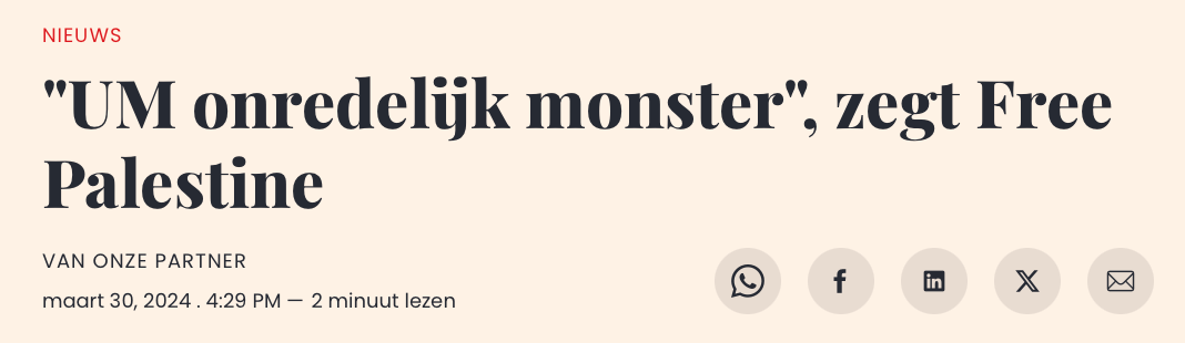 Het opzetten van het debatprogramma OmniUM door de Universiteit Maastricht was bedoeld om de polarisatie aan de UM naar aanleiding van met name de oorlog in Gaza te beteugelen. Vorig jaar werd OmniUM in het leven geroepen. Het moet deelnemers "een veilige ruimte" bieden voor "eerlijke gesprekken" waarbij onder meer een "vreedzame toekomst" verbeeld kan worden. Het kan verkeren: OmniUM verbindt zich nu na anderhalf jaar openlijk met Free Palestine Maastricht, de club die de Universiteit Maastricht anderhalf jaar geleden nog een "onredelijk monster" noemde.