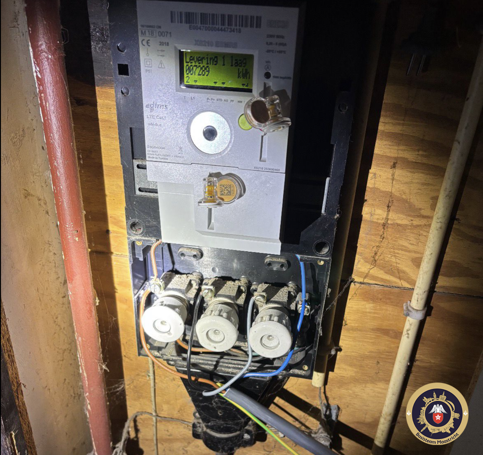 "Met een machtiging van de hulpofficier van justitie zijn we de woning binnengegaan. Binnen troffen we een professionele plantage in aanbouw aan. Er stonden nog geen planten, maar wel veel apparatuur. Die is direct ontmanteld en afgevoerd. Ook vonden we andere (mogelijk) verdovende middelen. Samen met @enexisnetbeheer hebben we een gevaarlijke stroomaftap veilig afgesloten."