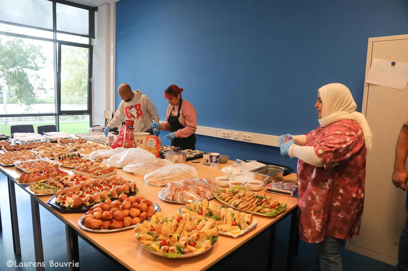 Open Dag bij het asielzoekerscentrum aan de François De Veijestraat. Younes, een vluchteling uit Jemen, staat met een mooie lach te wachten op zijn ‘leerlingen’. Samen met zijn ‘collega’, de Syrische Naghda, gaat hij de buren van het Maastrichtse AZC een eerste les Arabisch geven.