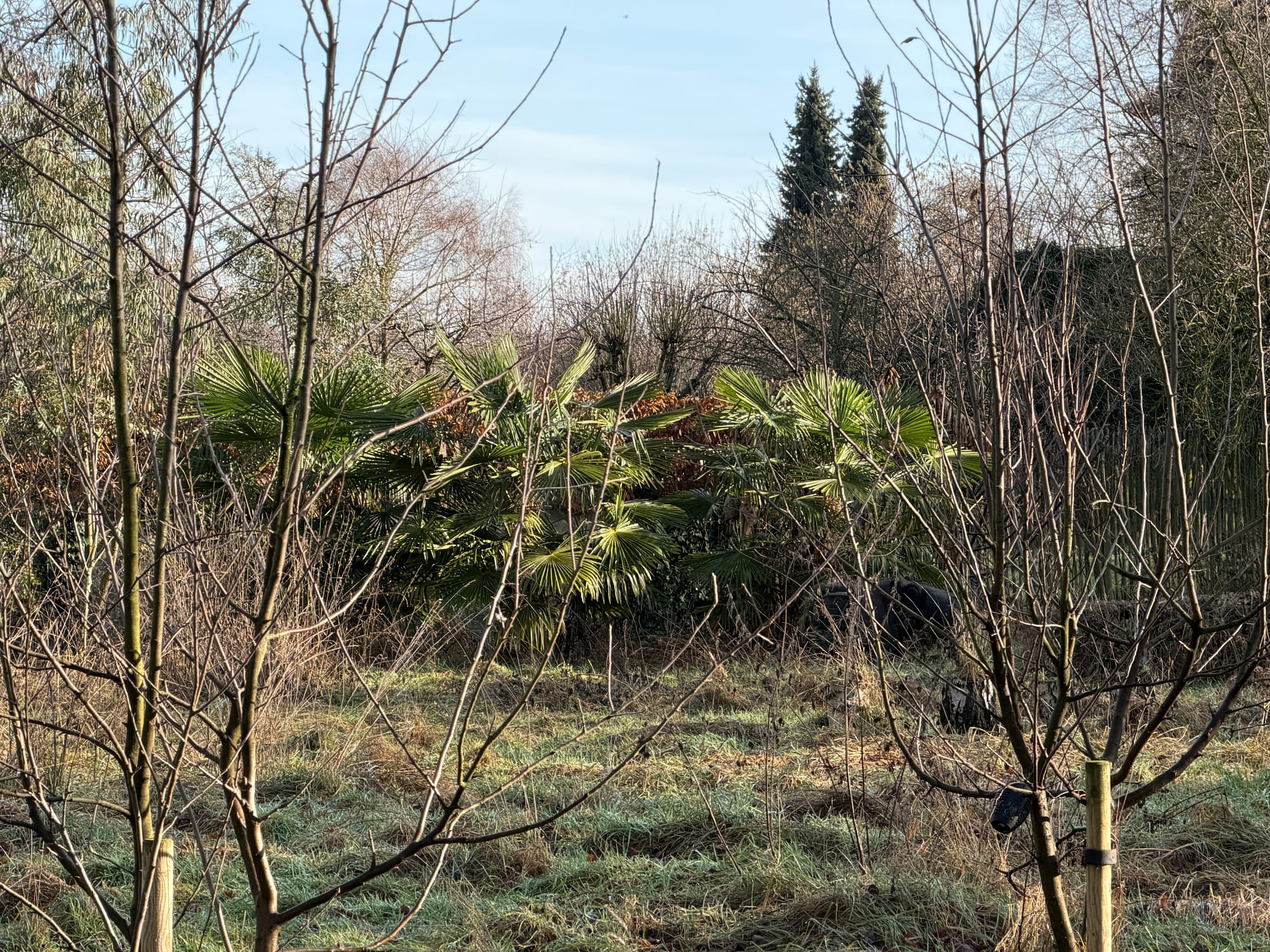 Palmbomen en bamboe, waar vroeger fruitbomen stonden. Volgens histroisch onderzoek zou het perceel overigens een siertuin zijn geweest.