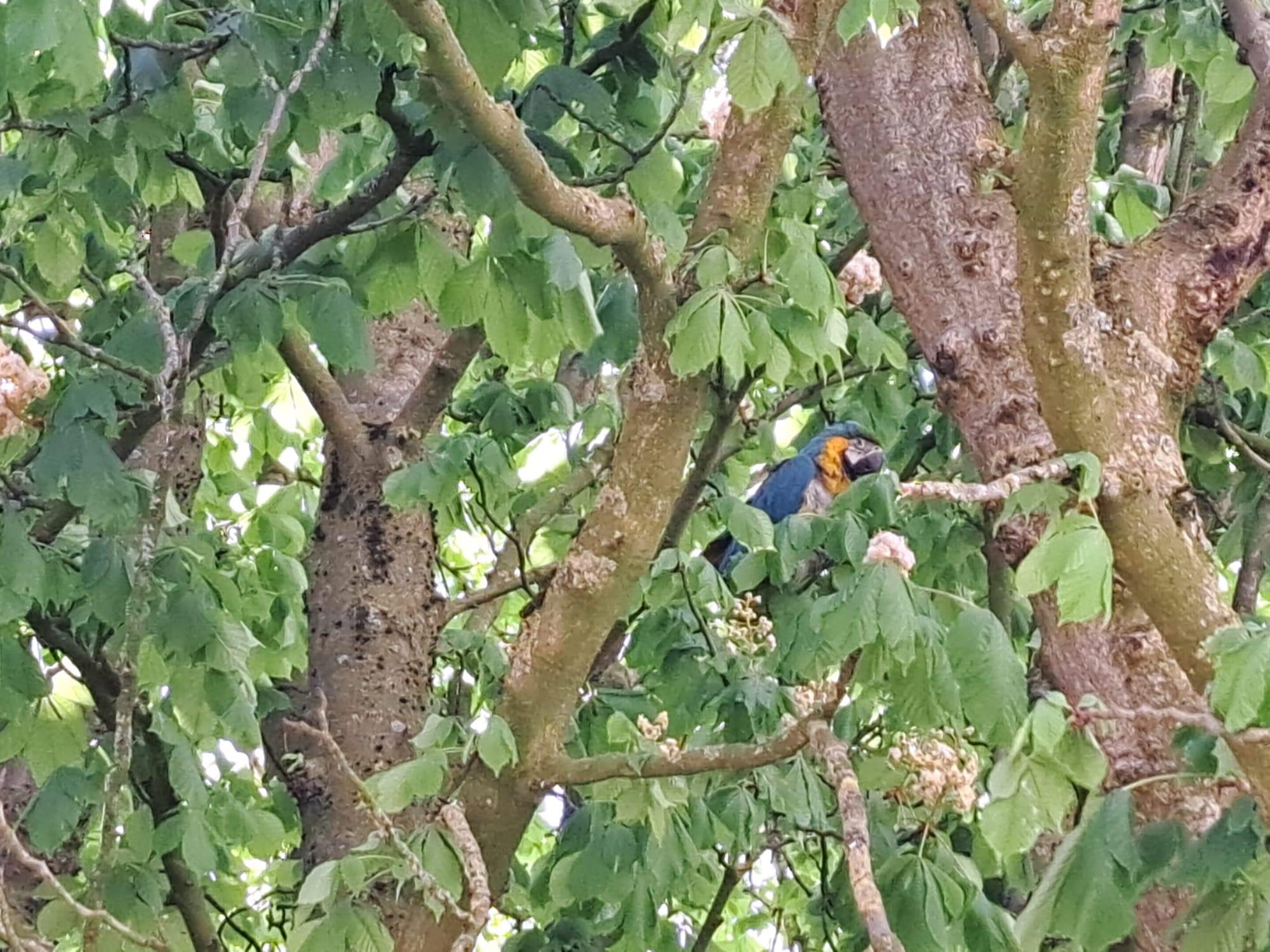 Rond 14.00 uur, na een drietal van pogingen van de brandweer om samen met Katrien van Kinder- en Zorgboerderij Daalhoeve, de ara te vangen vliegt Yellow terug naar een kastanjeboom op het terrein van Daalhoeve. Ze is dan pakweg 10-15 meter verwijderd vandaar reguliere verblijfplaats op de kinder- en zorgboerderij.