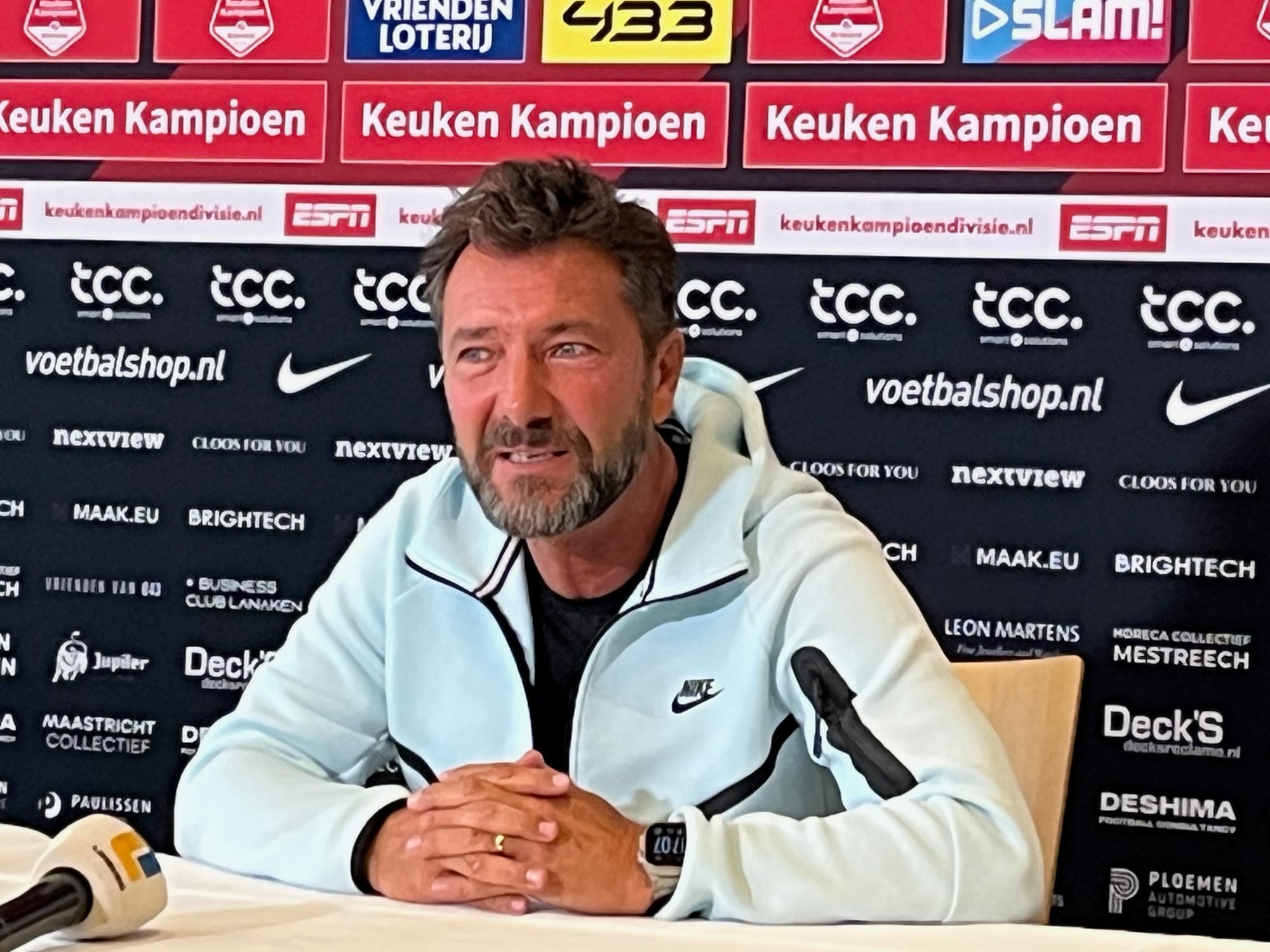 De nieuwe trainer zegt dat hij eigenlijk net bezig was met een sabbatical na een zware klus bij de KNVB waar hij docent was en trainer van Oranje onder 17. "Ik had rust nodig en wilde een jaar niets doen. Samen met mijn vrouw was ik met een camper onderweg door Spanje, toen MVV belde. Als speler heb ik altijd van MVV genoten, want het is een club die door de bevolking wordt gedragen."