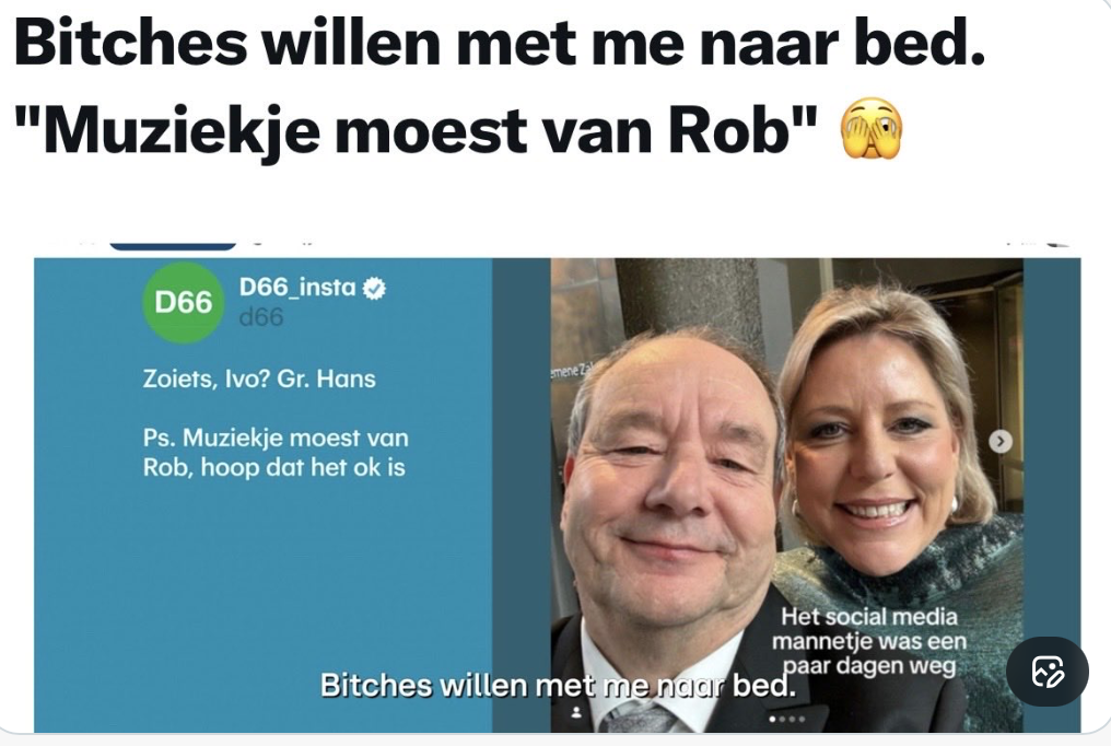 CDA-raadslid Gabriëlle Heine en D66-raadslid Thomas Gardien waren allebei uitgenodigd voor een vrijgezellenfeest van een gezamenlijke vriendin. Een van de activiteiten was piemels knutselen. "En toen hebben we er eentje gemaakt in CDA-thema: de Henri Bontenbal. En in onze Instagramstory gezet, omdat het een leuk grapje is", appt Thomas Gardien desgevraagd.