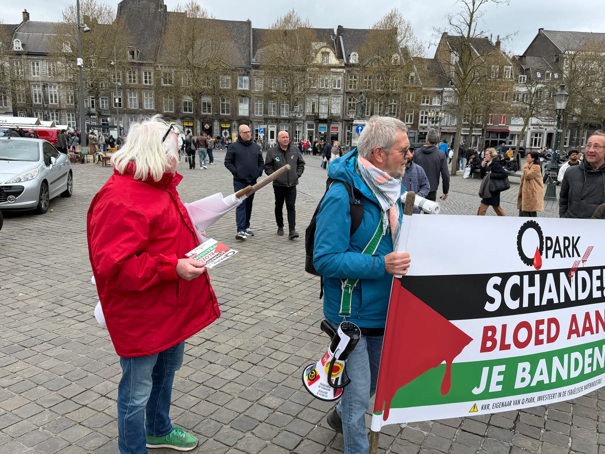 De demonstratie tegen Q-park heeft ermee te maken dat de eigenaar van Q-Park, KKR, investeert in de Israëlische wapenindustrie.