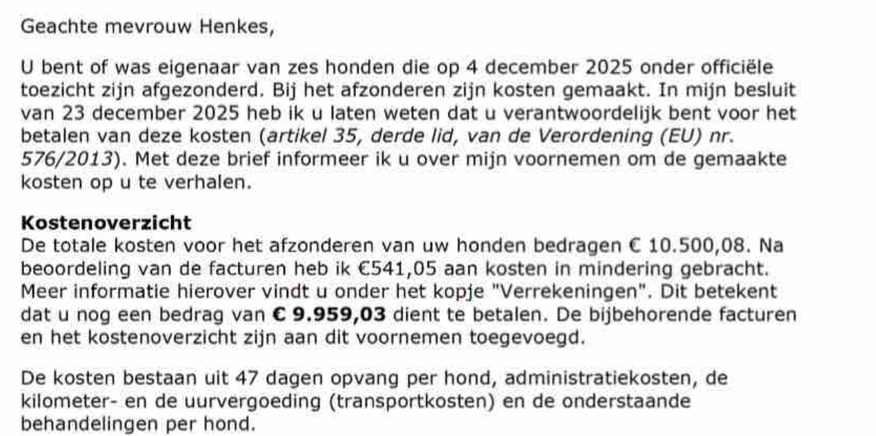 Het bedrag van bijna 10.000 euro kan Safiere niet betalen. Zij diende een bezwaarschrift ingediend met het verzoek de kosten te herzien en rekening te houden met gemaakte fouten en nalatigheden door de dierenarts. Helaas is dit bezwaar afgewezen. Vrienden van Safiere zijn inmiddels met een crowdfundingsactie gestart. Ze hopen zo 10.000 euro bij elkaar te krijgen, zodat niet alleen de honden zijn gered, maar ook de hondenredder.
