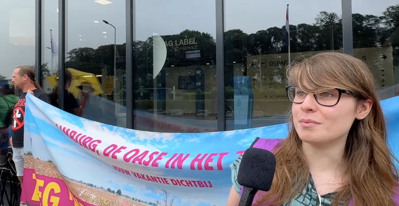 Activisten hebben zaterdag voor de vertrekhal van Maastricht Airport actie gevoerd tegen het vliegverkeer. De demonstranten vinden het onnodig dat er ver gevlogen wordt om op vakantie te gaan, terwijl het in Limburg ook mooi is om vakantie te vieren.