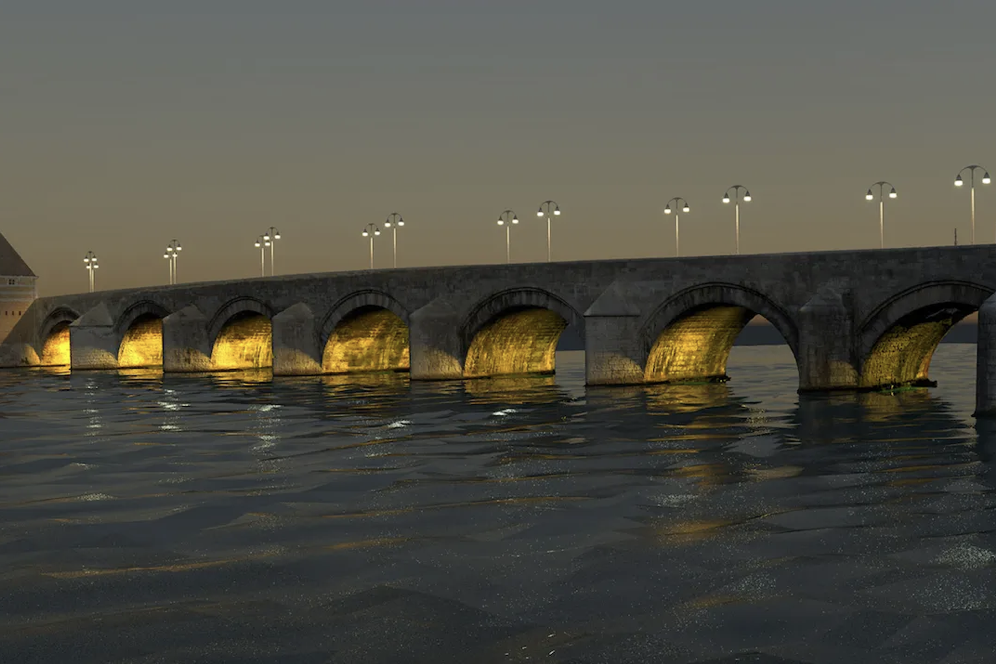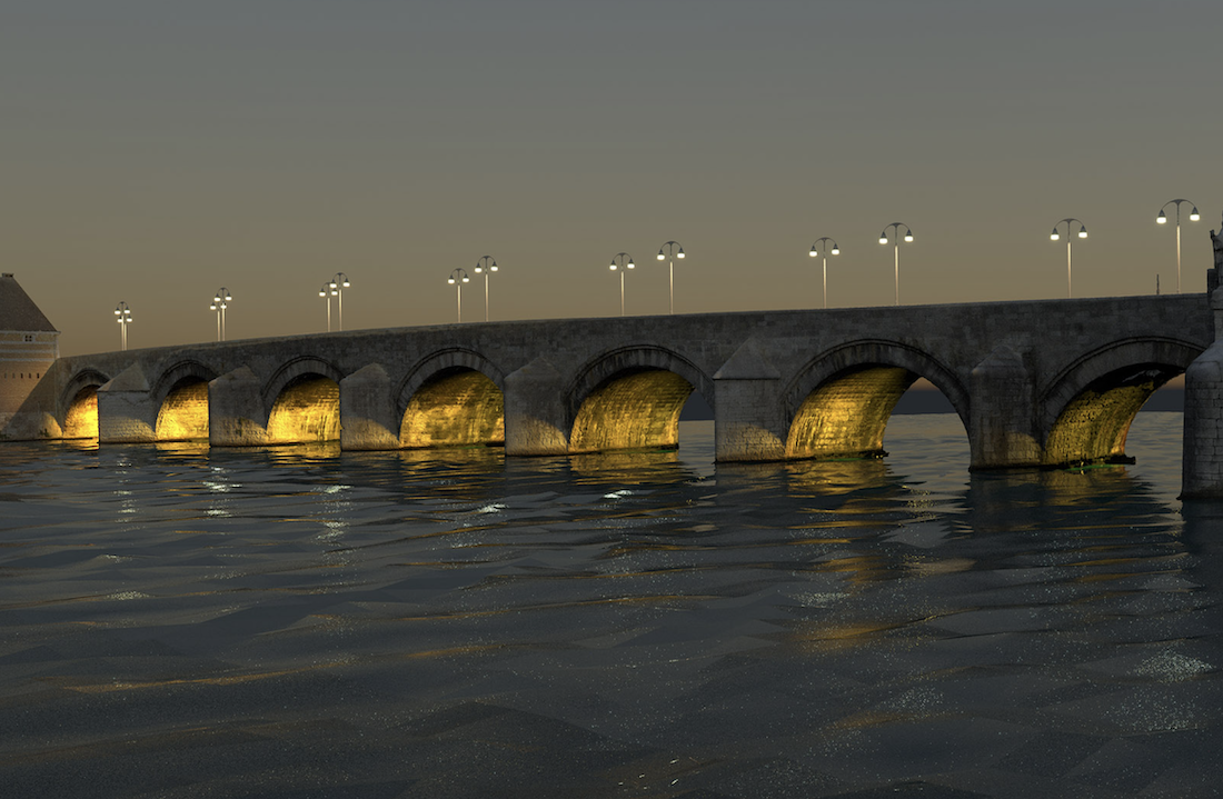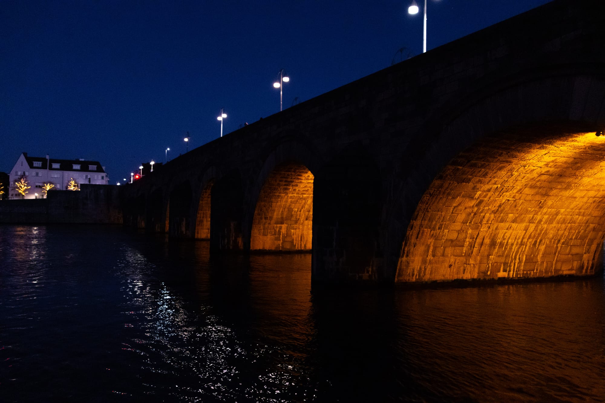 Sinds maandagavond branden speciale ledlampen onder de bogen van de Servaasbrug. De lampen zijn energiezuinig en veroorzaken geen hinder voor dieren zoals vleermuizen. Het heeft meer dan tien jaar geduurd voordat de verlichting een feit was.