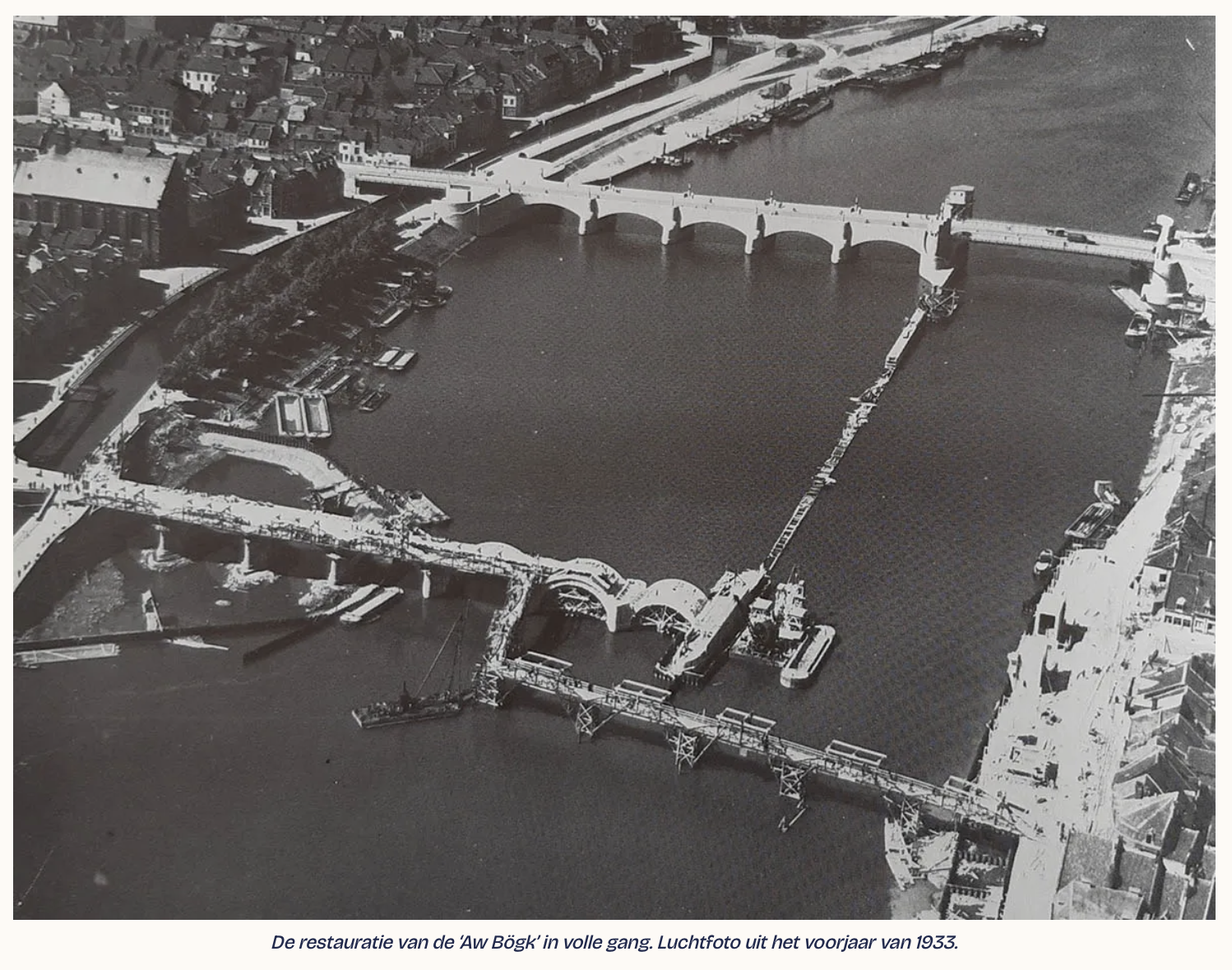 De geschiedenis herhaalt zich. In het geval van de nu in Maastricht geopende discussie over de toekomst van de Aw Brögk, de Servaasbrug, moet dat letterlijk worden genomen. Moet de brug misschien wel deels gesloopt worden om de stad bij hoogwater en de scheepvaart veilig te houden? De gelijkenis met de discussie van precies 100 jaar geleden, in 1926, is woord voor woord, argument voor argument identiek. “Maastricht wenst geen nieuwe brug en heeft ook geen andere brug nodig”