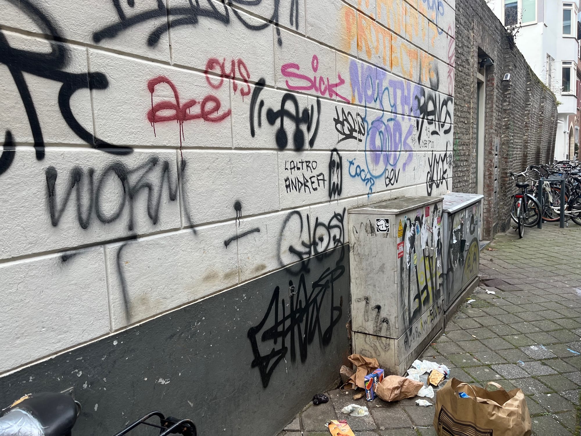 Niet alles is overigens sjiek en sjoen. We maakten op de hoek van de Grote Gracht deze foto. En de eerlijkheid gebied te zeggen dat we ons beperken tot deze ene foto. Sjiek en Sjoen, gewoon doen! Niet: Sjiek en Sjoen en we schrijven nog maar een beleidsstuk.