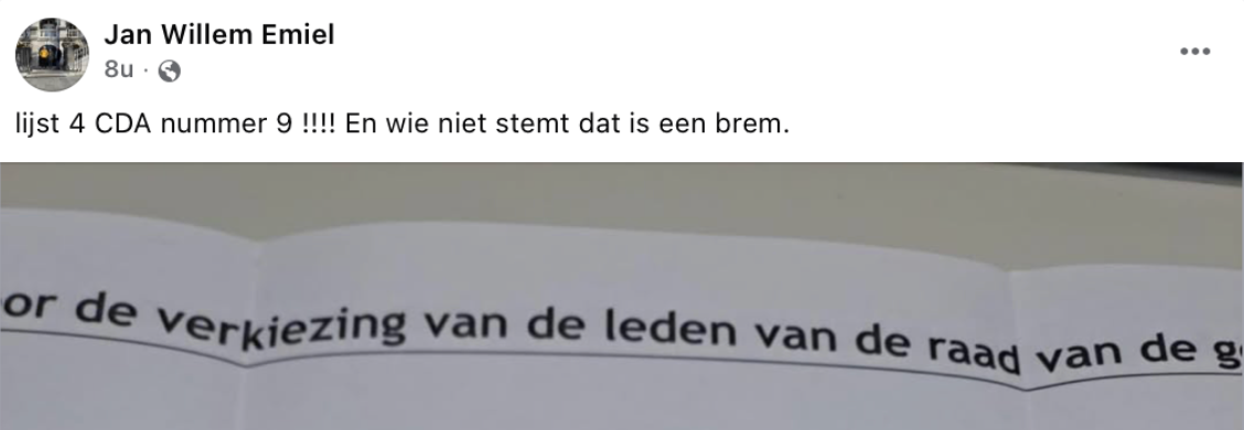 Dat was om te beginnen Willem Schneider. Het is eigenlijk gewoon fun om zijn Facebook-pagina in de gaten te houden. Zo leerden we een nieuw woord kennen: Brem. In de zin: "Wie niet stemt dat is een brem." Prachtig! Zo bleek hij ook een verwoed verzamelaar te zijn van stempassen. En Willem is ook handig met AI. Hij voorzag de meestal in muisgrijs geklede Henri Bontenbal van een wat kleurrijkere outfit. Met Karrewiel! Kijk, dit zijn de paradijsvogels waar de lokale journalistiek het natuurlijk ook van moet hebben. We gaan er nog veel van horen: Schneider komt met 380 voorkeursstemmen in de raad. De eerste 'reiziger' in de raad, zoals hij het zelf noemt.