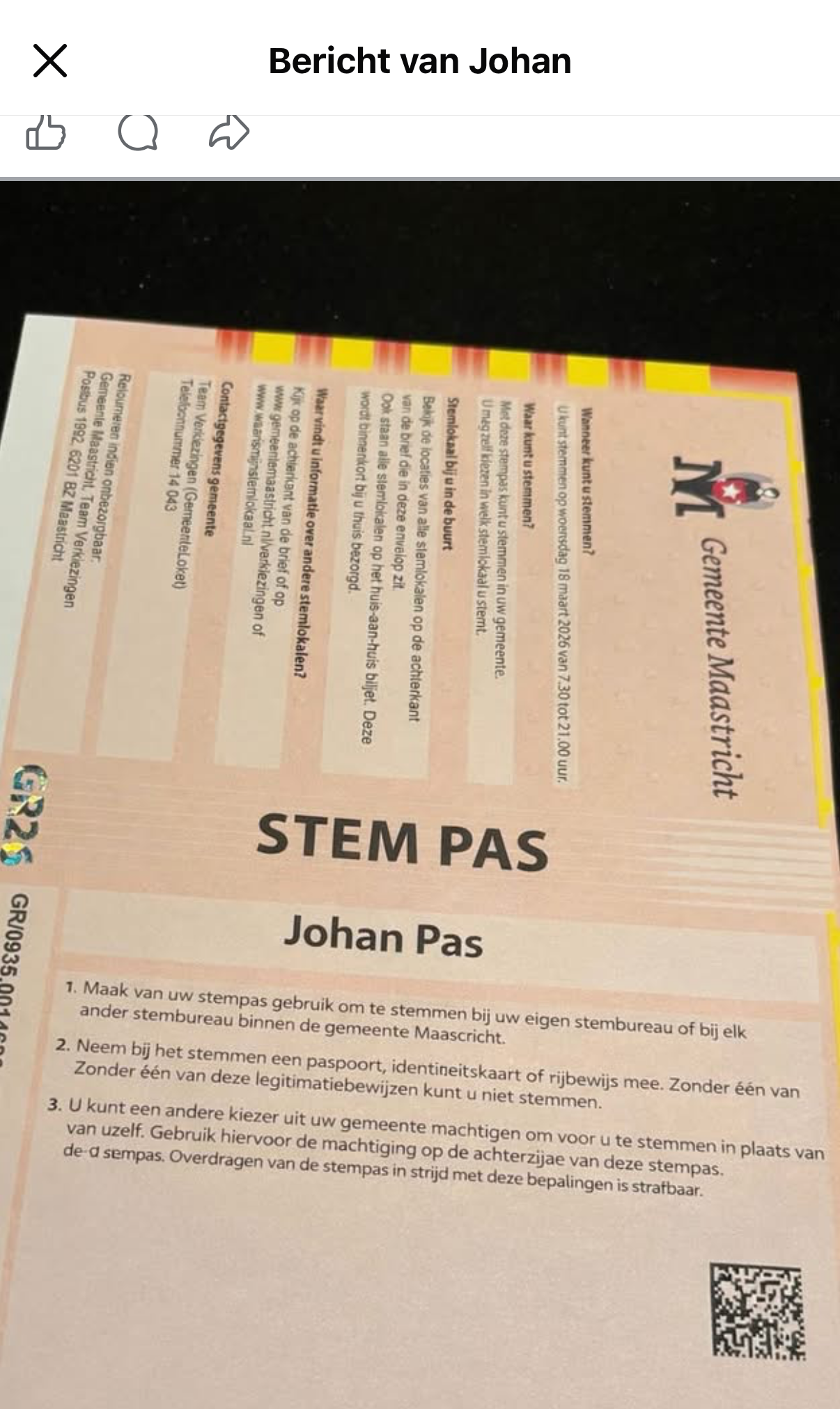 Maar je hebt natuurlijk altijd baas boven baas. De Lange, niet van de Karrosseer maar van D66, wist het zelfs gedaan te krijgen dat alle dik 103.000 stemgerechtigde Maastrichtenaren in een officiële envelop van de gemeente, op een officieel document met het wapen van de gemeente én een hologramzegel erop, een keihard stemadvies kregen. Zelfs in hoofdletters, in kapitalen zeggen vormgevers dan. STEM PAS. Waar het natuurlijk om gaat is de tussenruimte tussen de M en de P. Die minieme spatiëring betekent natuurlijk een wereld van verschil. Twee woorden zeggen meer dan één. Het is net als de ruimtes tussen de noten die de muziek maakt. En STEM PAS, dat deden maar liefst 682 mensen. De Lange werd even aan het wankelen gebracht door de machtsovername door Marlou Jenneskens bij D66. Maar de Lange is back.