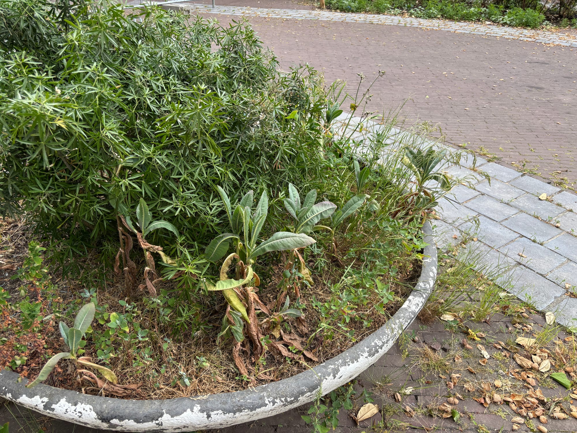 Soms vraag je je af of er bij de aanleg van groen in de openbare ruimte ook aan gedacht is de jonge aanplant water te geven als Slivvenhier dat niet doet.