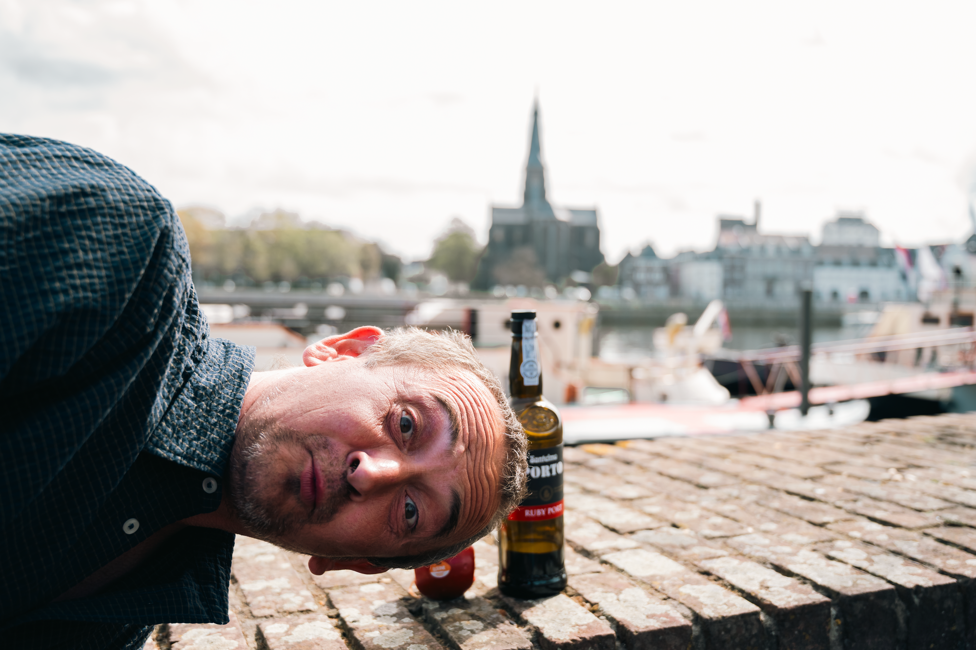 En er wordt veel geklaagd over rondhangend gespuis in de buurt van de drugsboten aan de Maasboulevard, maar gelukkig lopen er ook nog vrolijke types rond. Aan de andere kant, wie zou er niet vrolijk worden na het nuttigen van een fles Port.