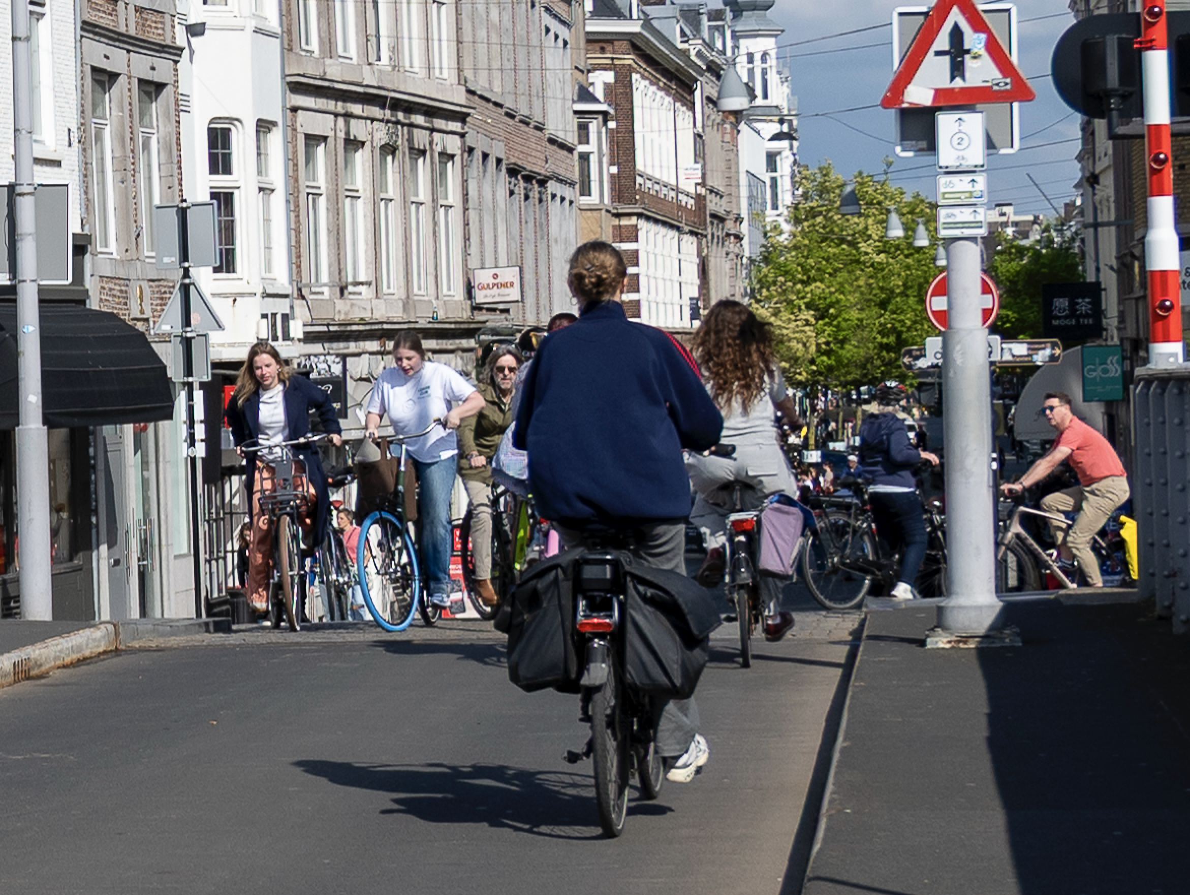 Menigeen zal zich afvragen of dit het gewenste effect is dat je wil bereiken met een autoluw winkelgebied, waar flaneren langs nieuwe terrasjes en op een relaxte manier shoppen het ideaalplaatje zou zijn. Voor de voetganger is autoluw Wyck geen pretje met de langsrazende diversiteit aan tweewielers.