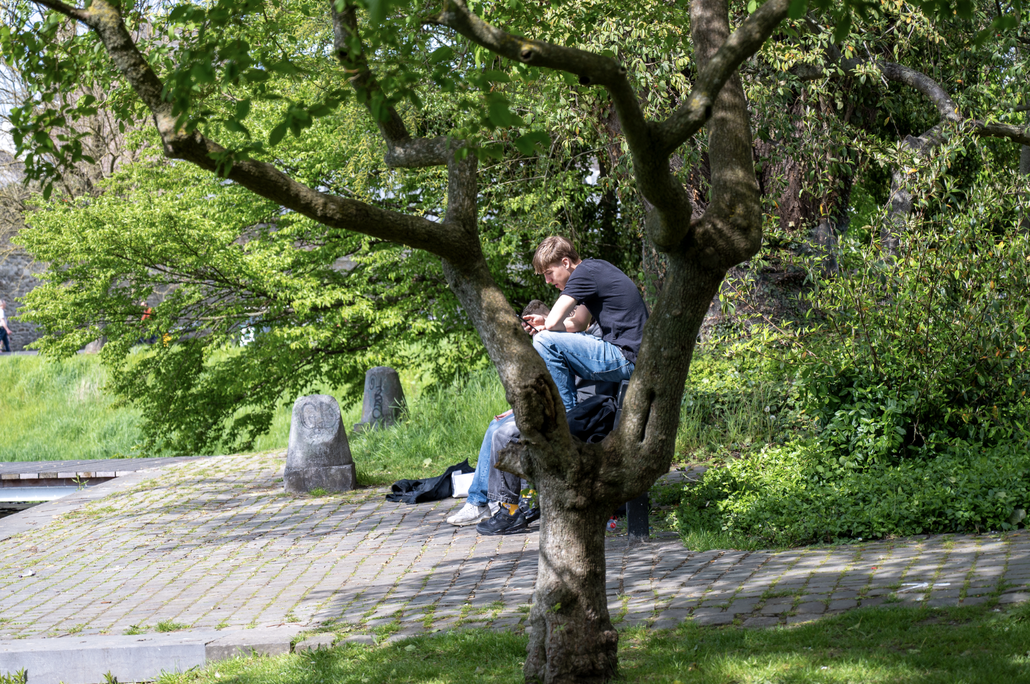 En dan bovenstaande foto. Zit de jeugd eens eindelijk buiten te spelen en in een boom te klimmen zitten ze nog op de telefoon. Oh nee, wacht, schijn bedriegt. De jongeman zit bij nader inzien in de boom, maar op een bankje naast de boom. Geen AI, maar gewoon een kwestie van perspectief.
