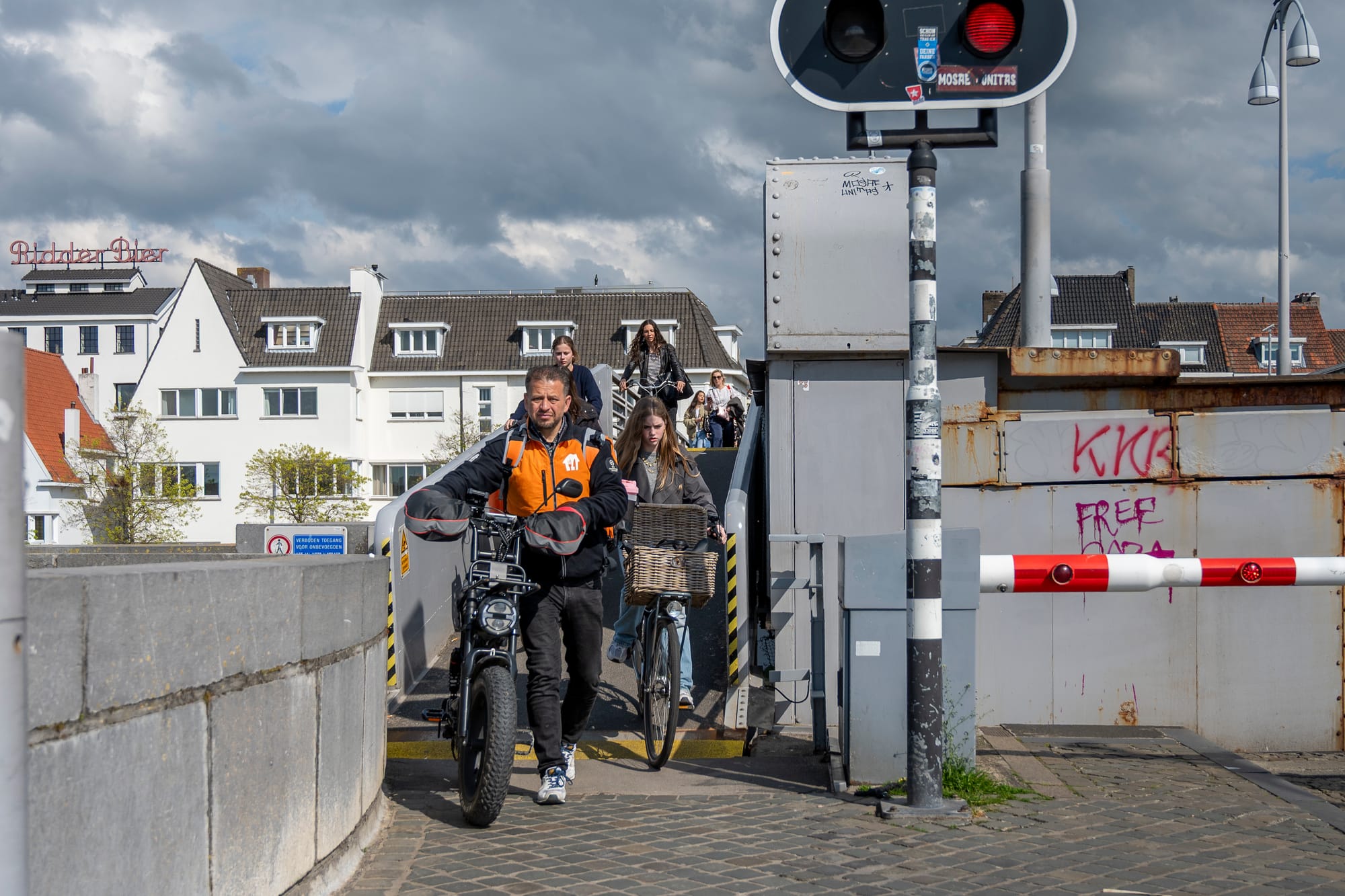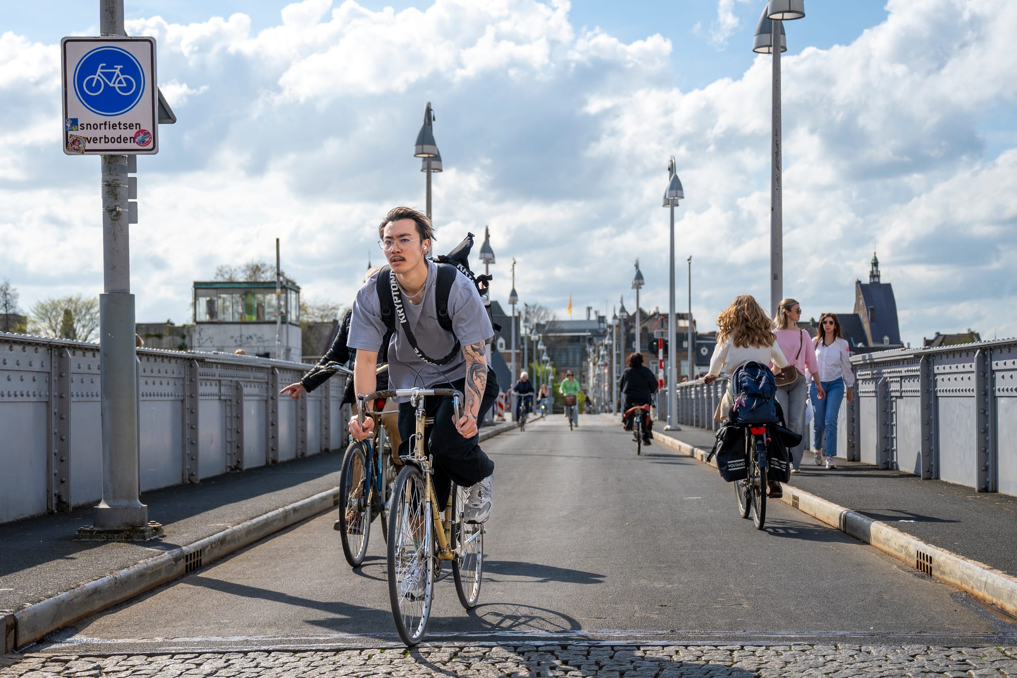 Opzij, opzij, opzij, maak plaats, maak plaats, maak plaats.... we hebben een ongelooflijke haast. Sinds Wyck begonnen is met de proef autoluw Wyck hebben de fietsers daar vrij spel. Nu de auto's er s'avonds en op zondag niet meer zijn en de bestelbussen 's middags ook zijn verdwenen lijkt de Wycker Brugstraat meer op de A2 voor fietsers. Drie, vier, vijf naast elkaar. Bakfietsen, pizzakoeriers, fatbikes, e-bikes, racefietsen.