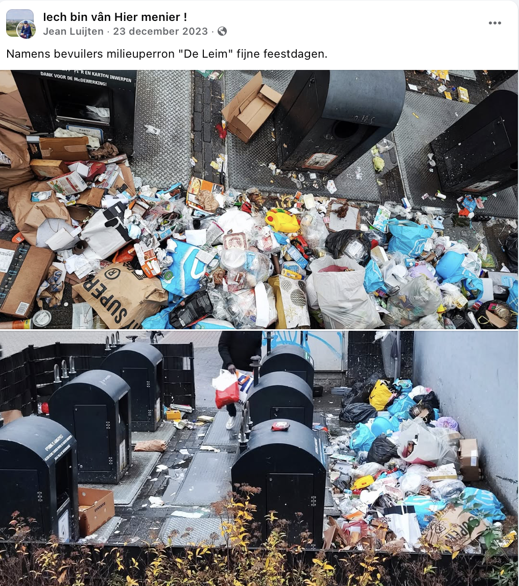 Waarop een andere buurtbewoner reageert: "Dit hebben we te danken aan de Belgen die hier heel veel 's nachts hun rotzooi storten. Maar niet alleen de Belgen. En ook niet alleen hier, het is overal hetzelfde bij deze milieuperrons."