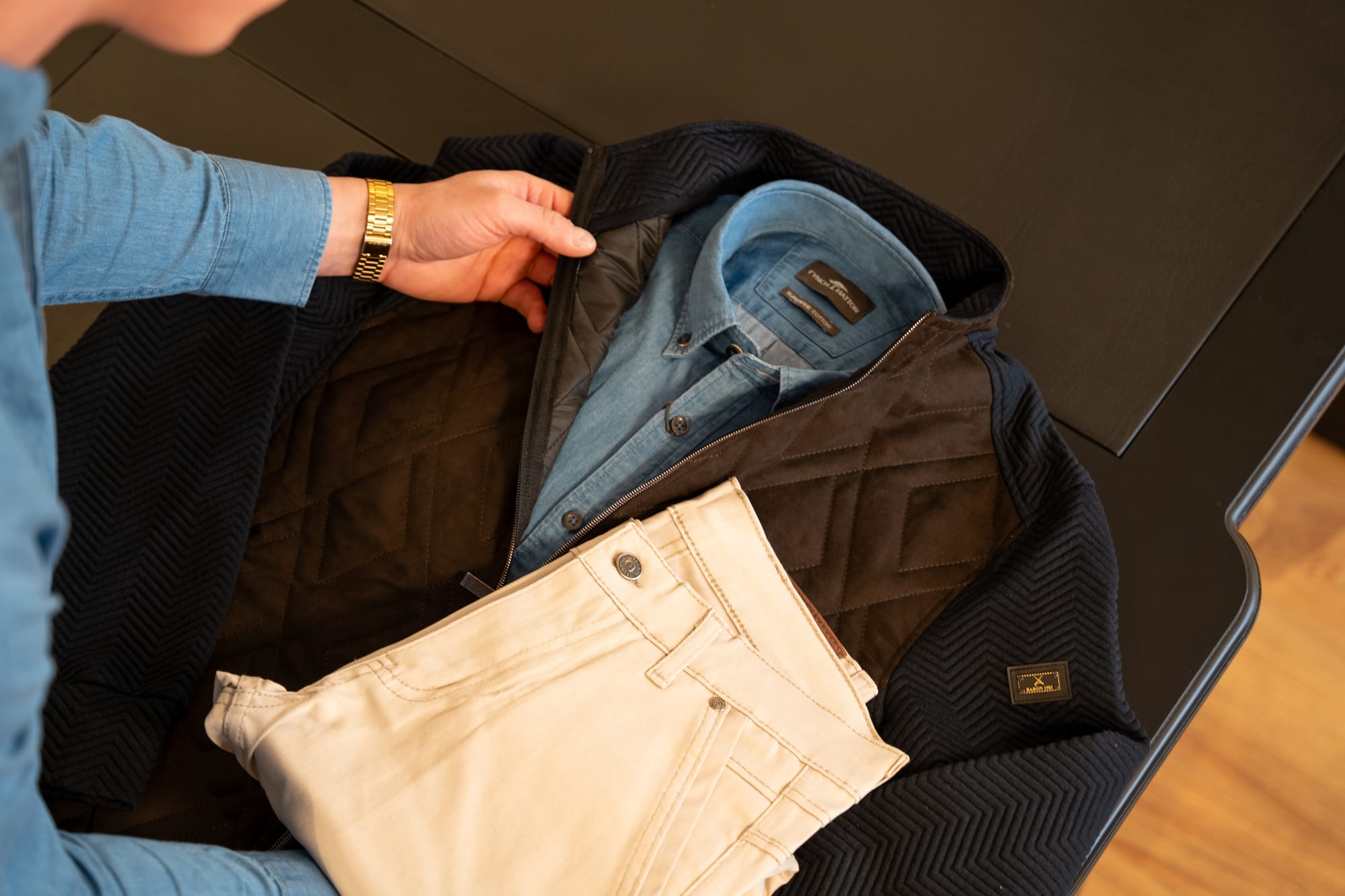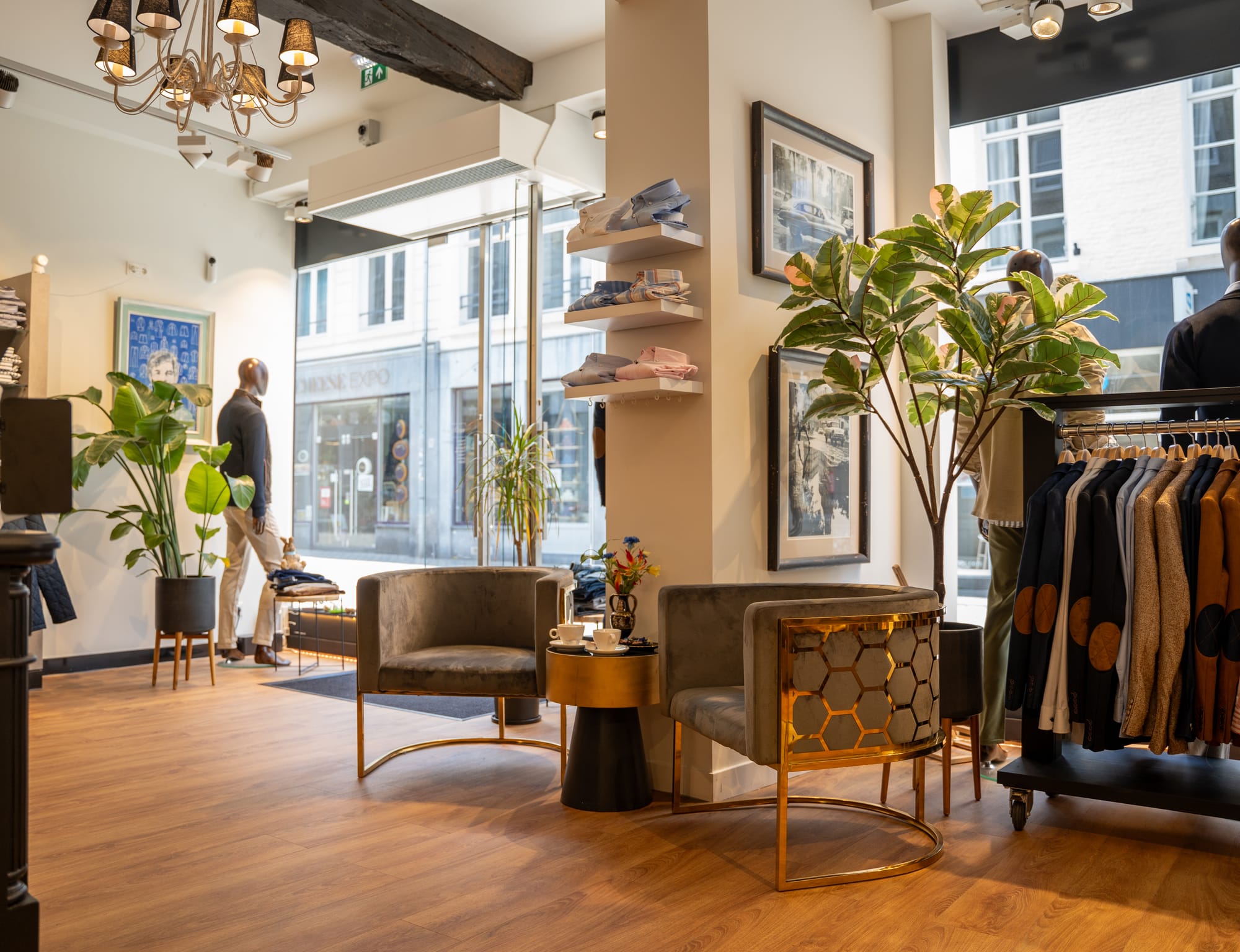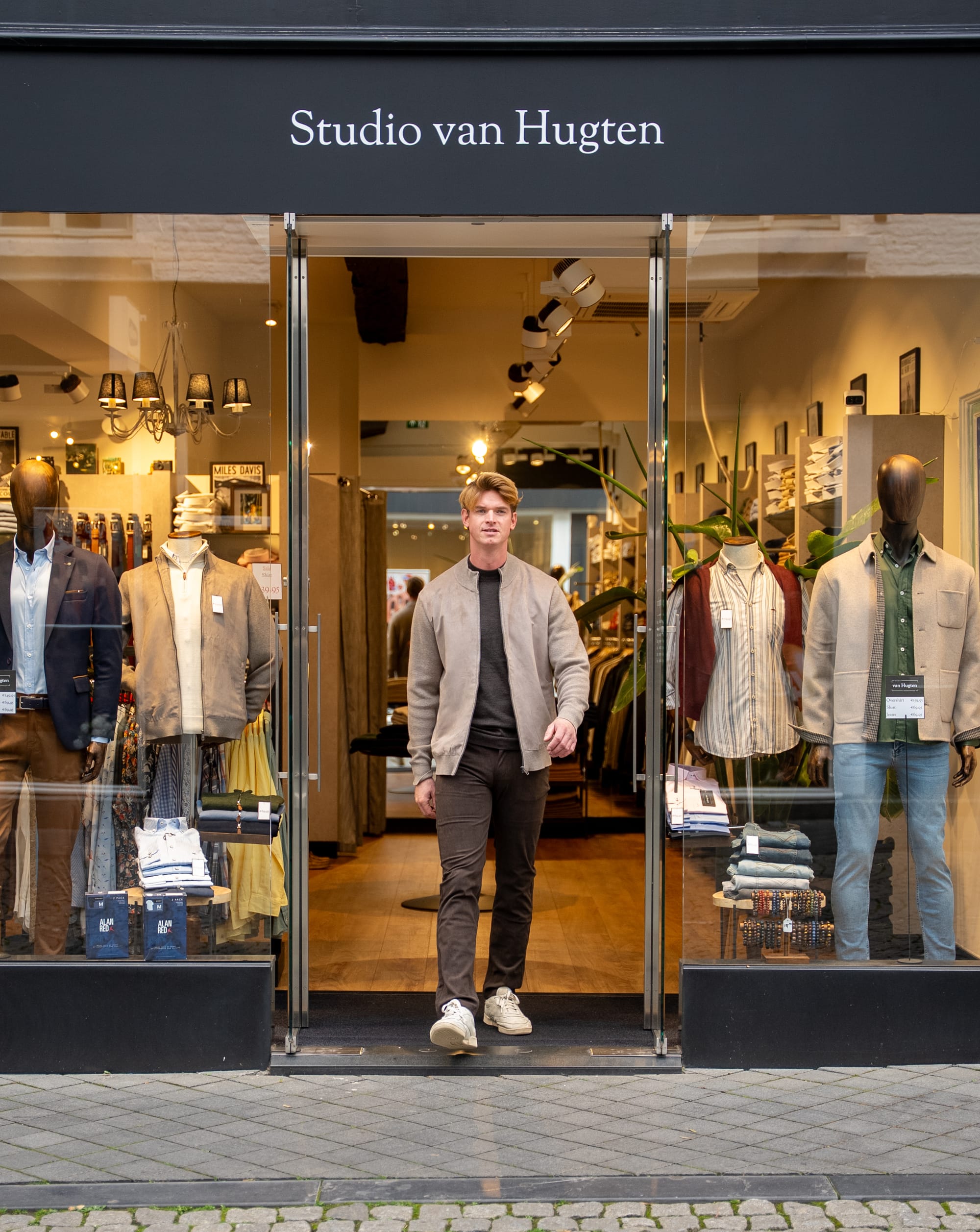 “Het modevak is mij letterlijk met de paplepel ingegoten”, vertelt de 38-jarige Jasper, die sinds 2020 in het centrum Studio van Hugten runt. “Als kind ging ik al met mijn vader mee op inkoop en tijdens mijn studie in Amsterdam werkte ik in verschillende herenmodezaken. Na het pensioen van mijn vader kon ik hetzelfde pand mijn eigen zaak verder uitbouwen.”