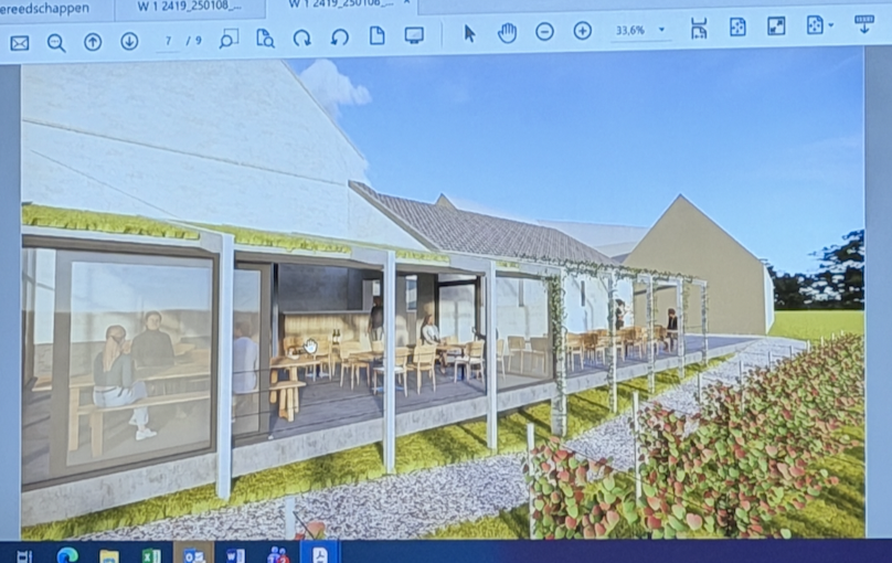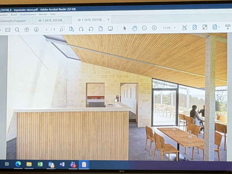 Architect Dennis Vullings legt uit dat voor een modern concept is gekozen voor de uitbreiding van het proeflokaal. Het is de bedoeling dat bezoekers vanuit het proeflokaal over de wijnranken het dal in kunnen kijken. Pure beleving moet worden toegevoegd, ook voor de mensen die er gewoon een glas wijn willen drinken. Wie vanaf de Cannerweg naar boven kijkt, nu al een iconisch beeld, kijkt dan langs de wijnranken door naar het proeflokaal.