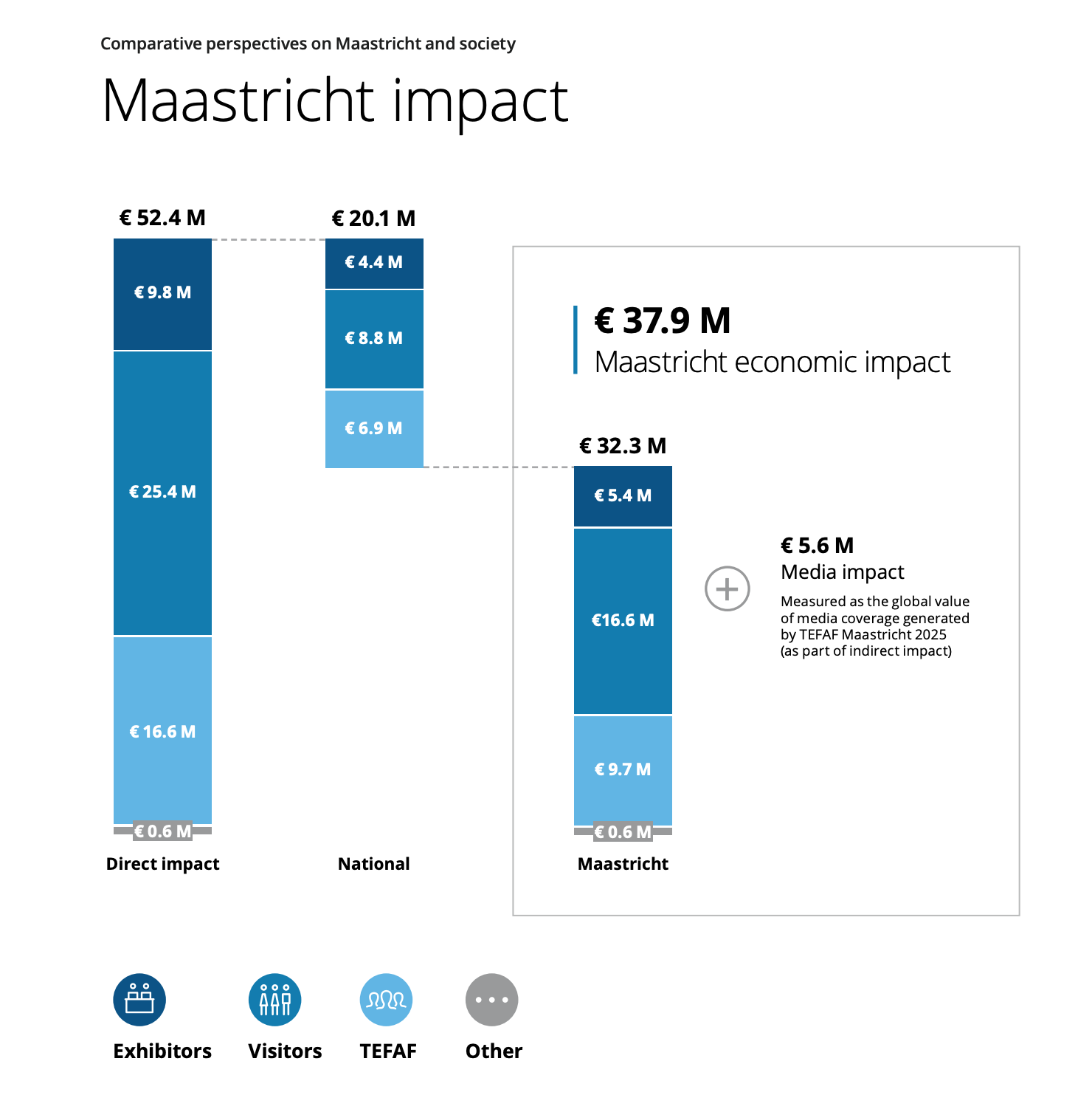 De economische impact van de kunstbeurs TEFAF voor de stad is groot. De beurs in het MECC levert de stad jaarlijks 32,3 miljoen euro op. Het is geld dat besteed wordt in en rond de stad door bezoekers en kunsthandelaren. Met name de hotels en restaurants in Maastricht profiteren van de TEFAF.
