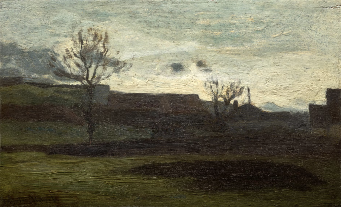 Gallery 19c uit Texas neemt een schilderij van Claude Monet mee. Dit werk van Claude Monet biedt een zeldzame inkijk in de vormende jaren van de jonge kunstenaar, geschilderd toen hij nog maar een tiener was. Dit kleine olieverfschilderij op paneel toont de rand van een industrieel landschap, met kale bomen die zich aftekenen tegen een bewolkte lucht en lage, donkere fabrieksgebouwen die opgaan in de horizon.