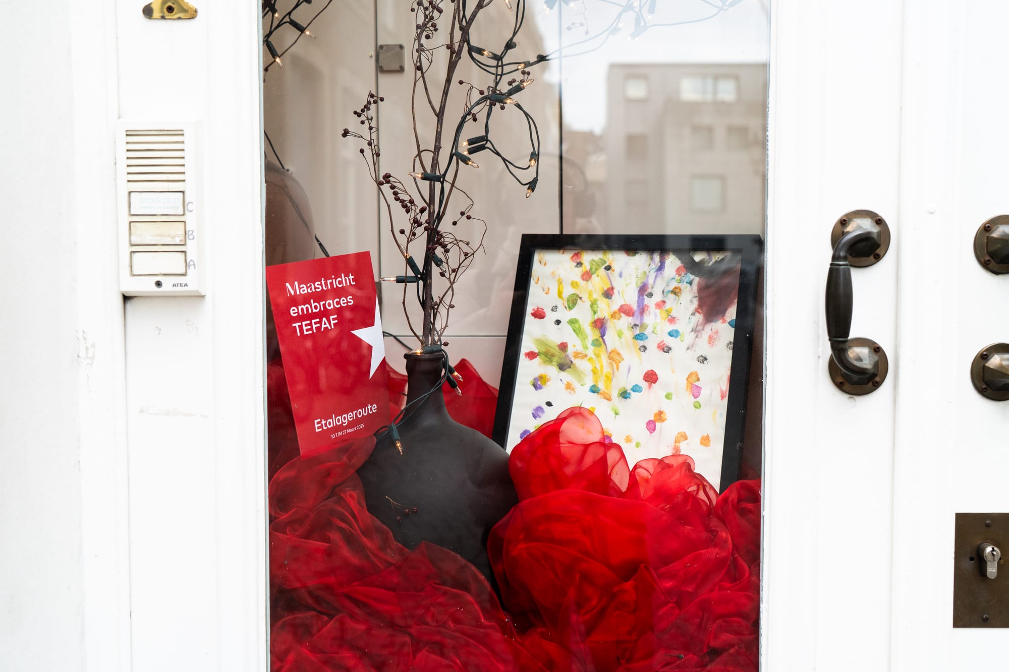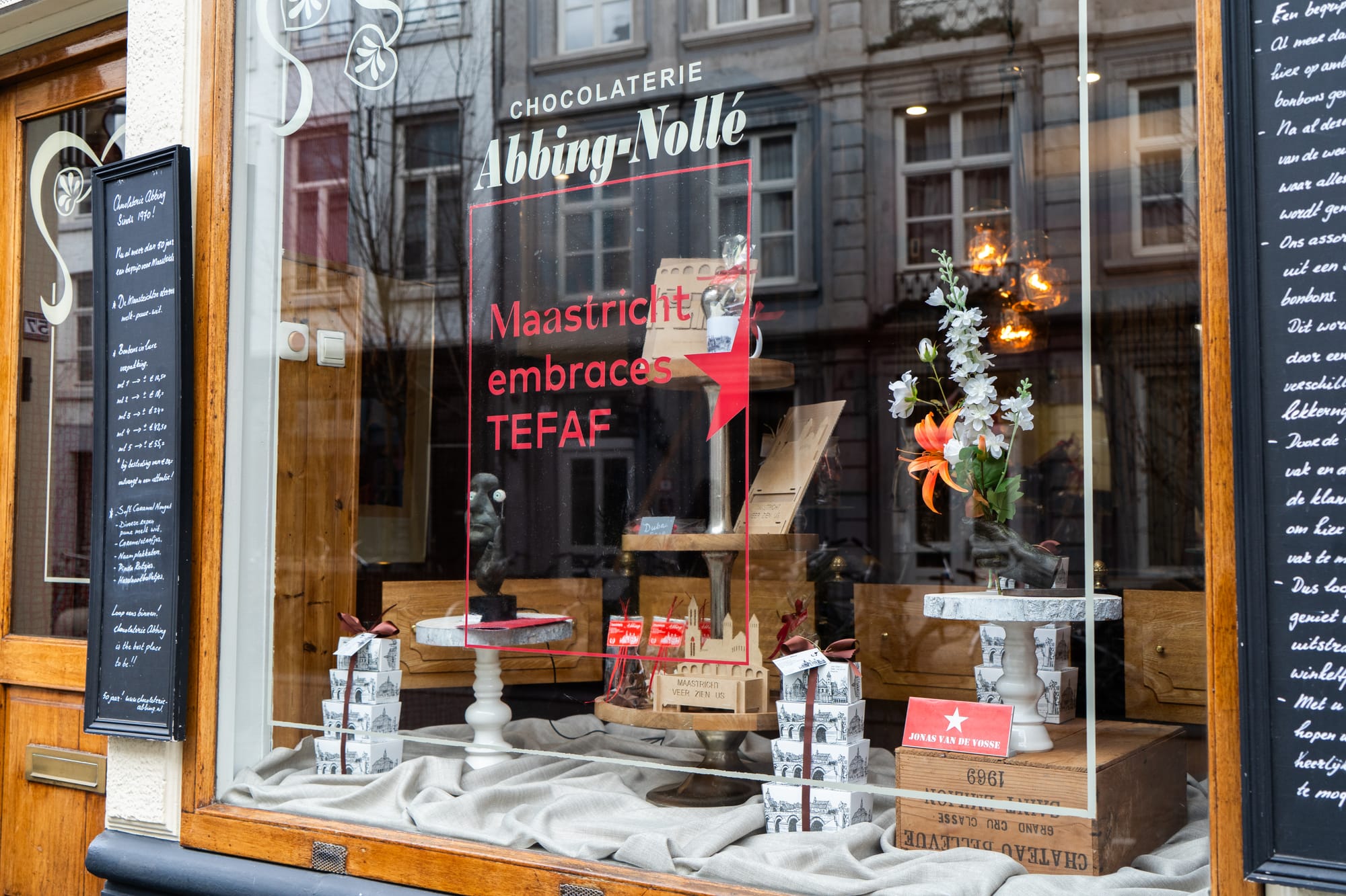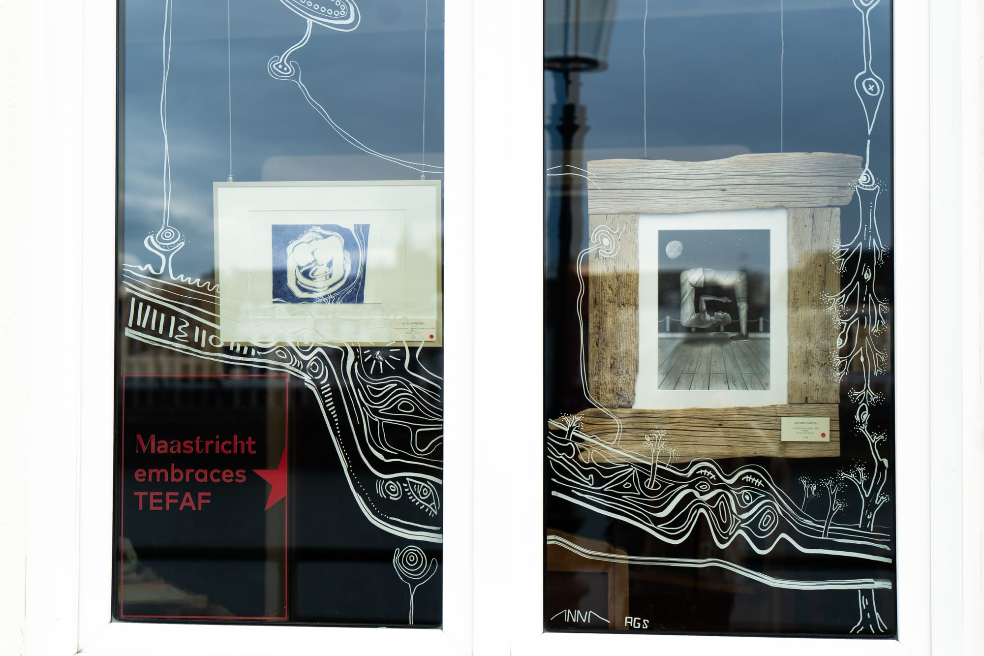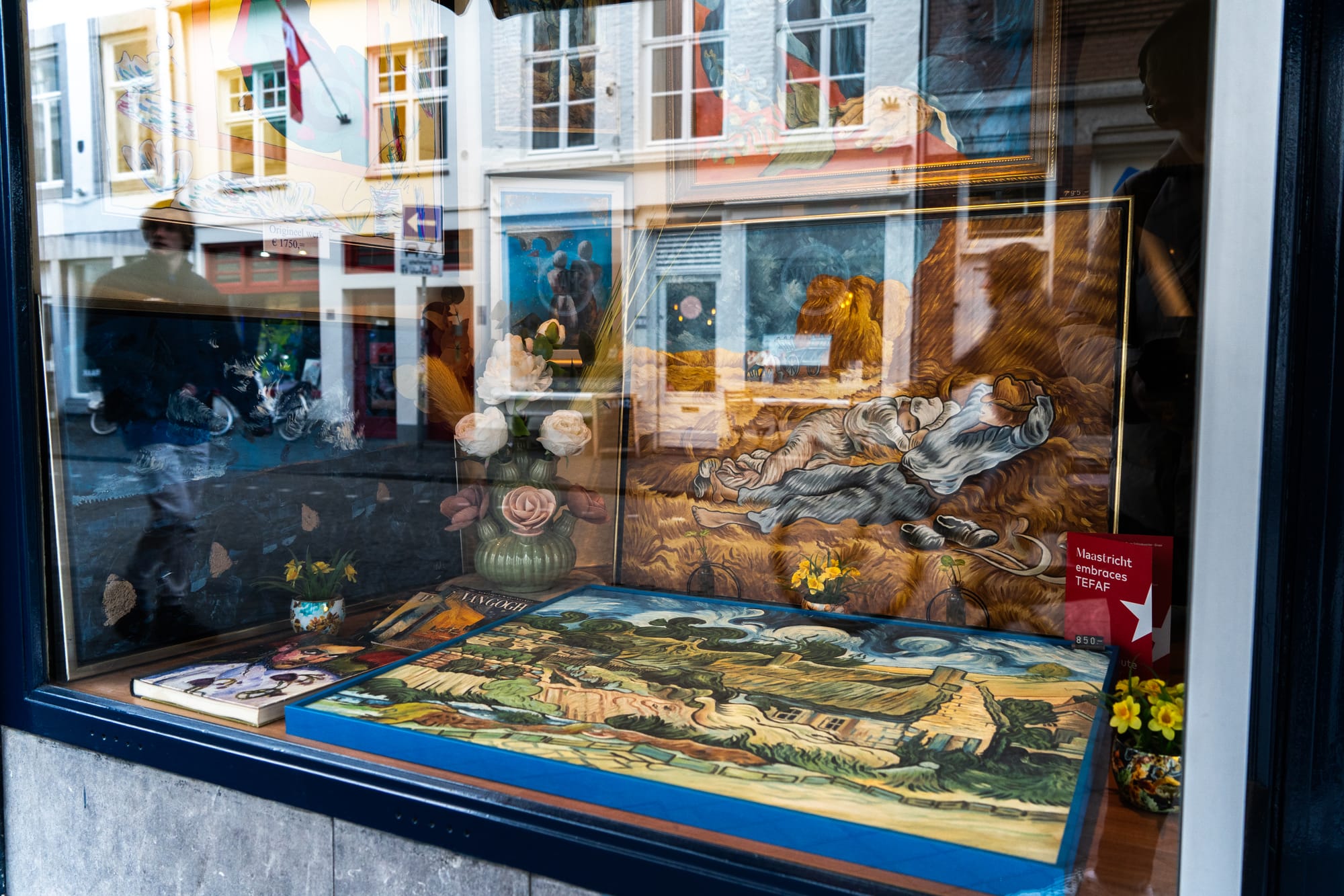 Vele tientallen etalages in Maastricht zijn dezer dagen mini-exposities, met een sterke knipoog naar de Tefaf in het MECC. Het is een mooie manier om de verbinding te maken tussen de kunst in het zwaarbeveiligde MECC en de kunst letterlijk in de 'kiekoet', aan straat. In een van de etalages wordt met één zin het belang van kunst uitgelegd: 'No culture, no future'. Onze fotograaf Sem Augustin maakte de volgende reportage.