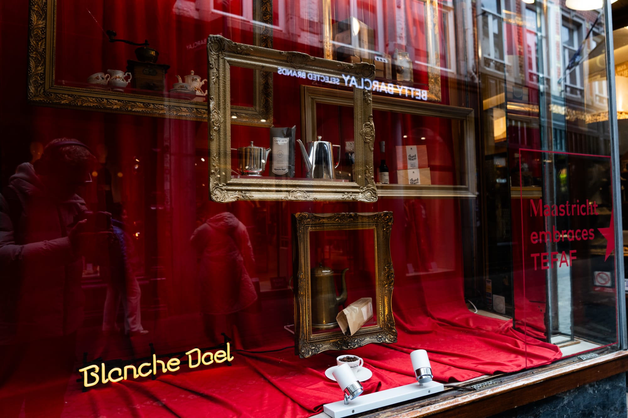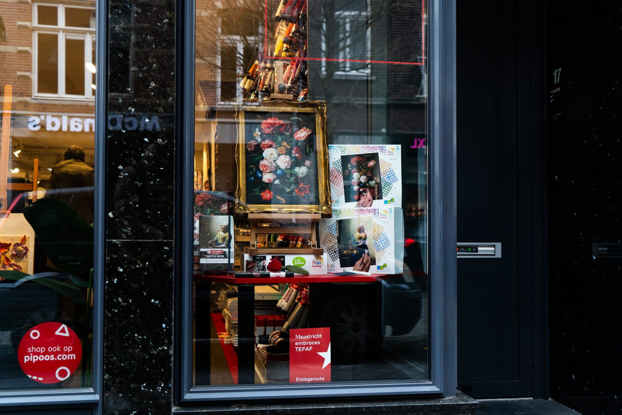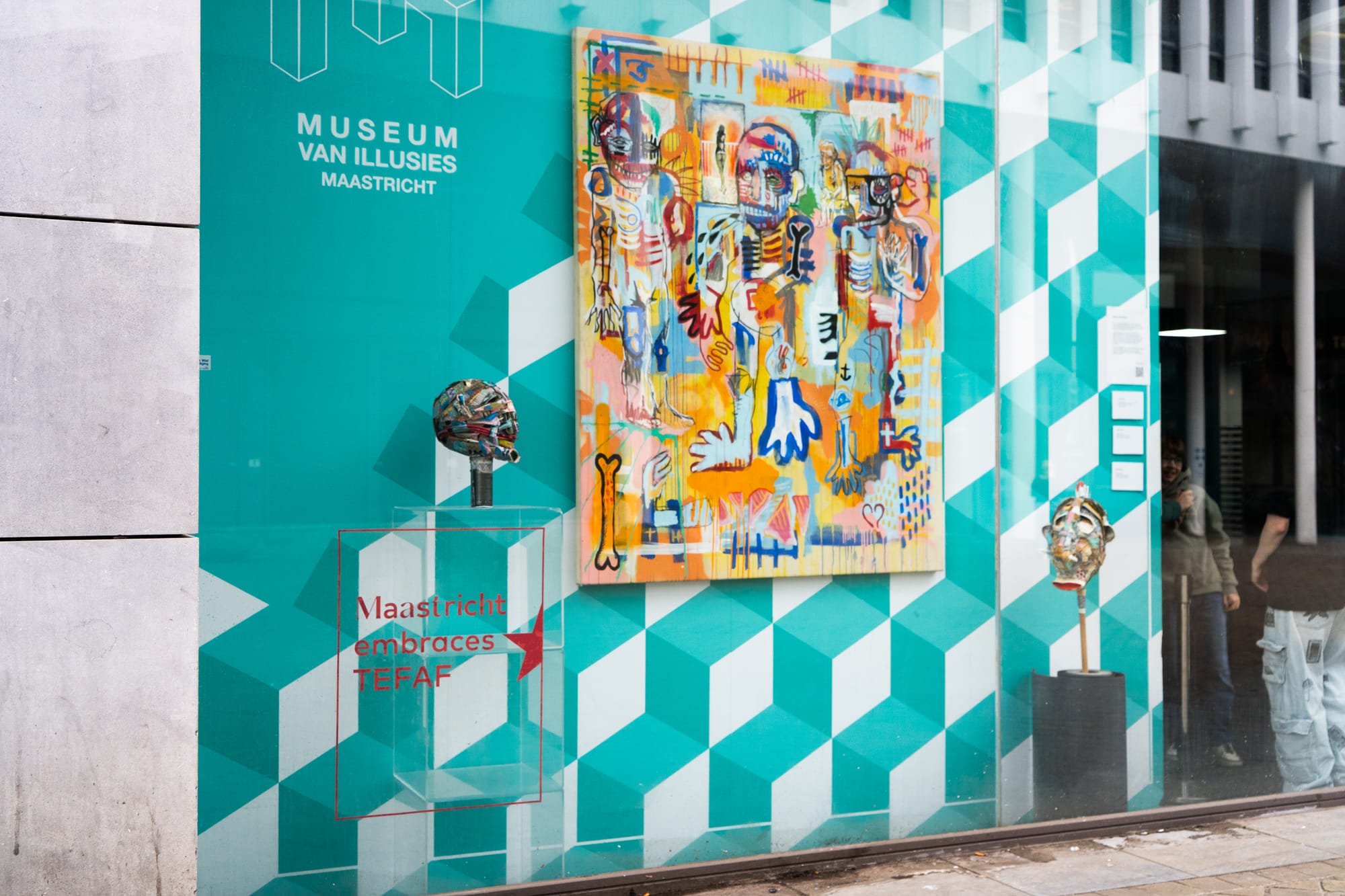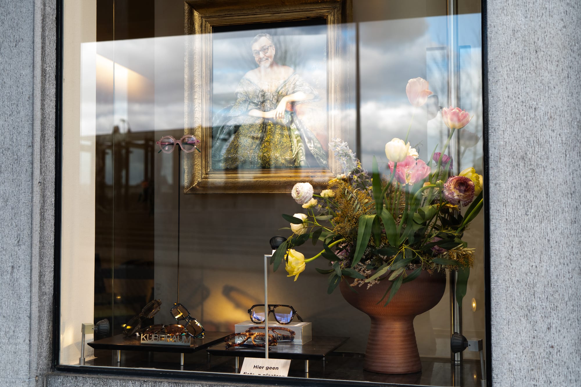 Vele tientallen etalages in Maastricht zijn dezer dagen mini-exposities, met een sterke knipoog naar de Tefaf in het MECC. Het is een mooie manier om de verbinding te maken tussen de kunst in het zwaarbeveiligde MECC en de kunst letterlijk in de 'kiekoet', aan straat. In een van de etalages wordt met één zin het belang van kunst uitgelegd: 'No culture, no future'. Onze fotograaf Sem Augustin maakte de volgende reportage.