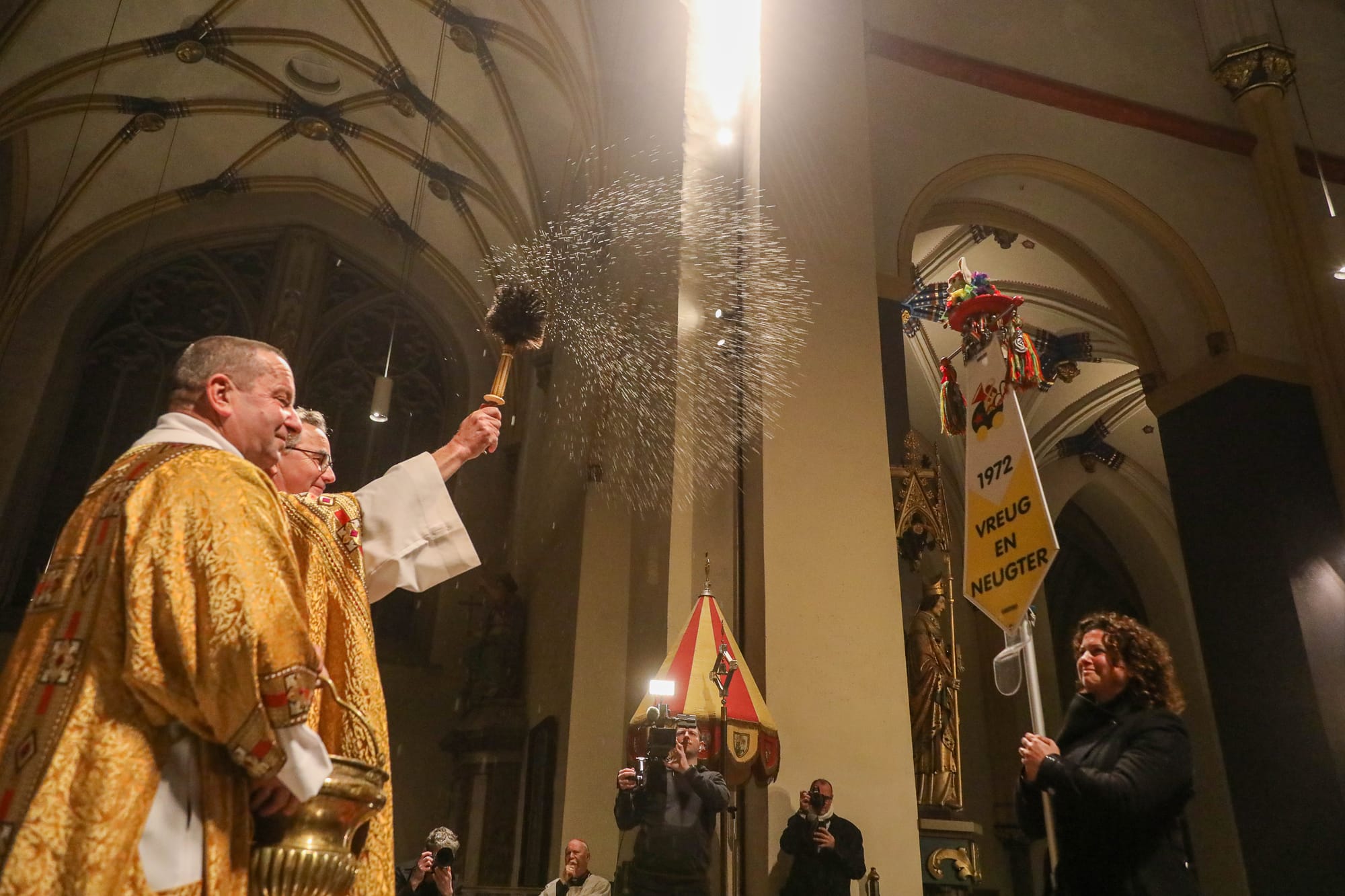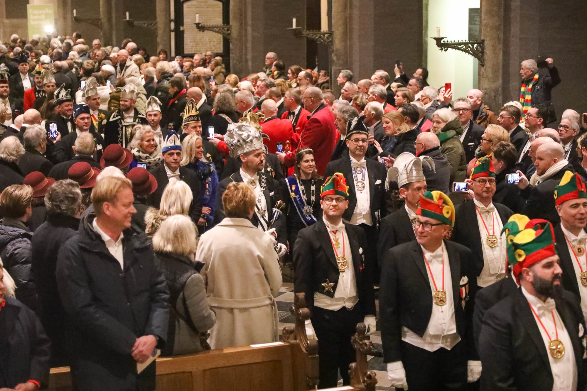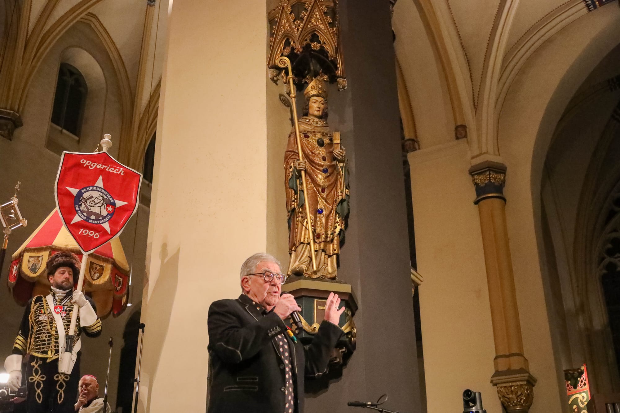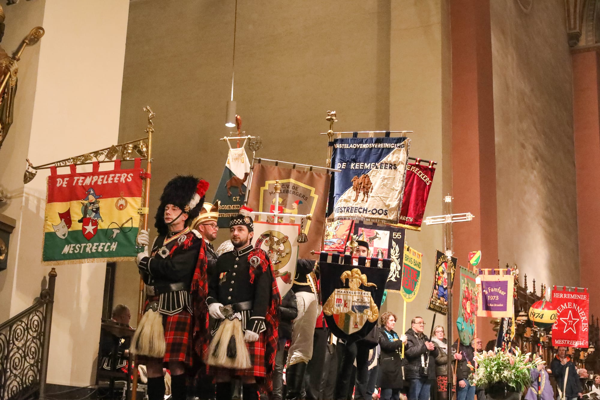 De opkomst van al die Maastrichtse vastelaovendsgezelschappen is zonder overdrijven indrukwekkend. Net zo zeer de anderhalf uur dat al die veendeldregers op het altaar in het gelid staan. Dat deken John Dautzenberg bij dit soort gelegenheden de juiste man op de juiste plaats is, dat bewees hij ook woensdagavond. Met zijn Kirchraojse tongval of woorden lukt het hem zonder inspanning ook een Maastrichtenaar te zijn, zo u wilt: eine vaan us.