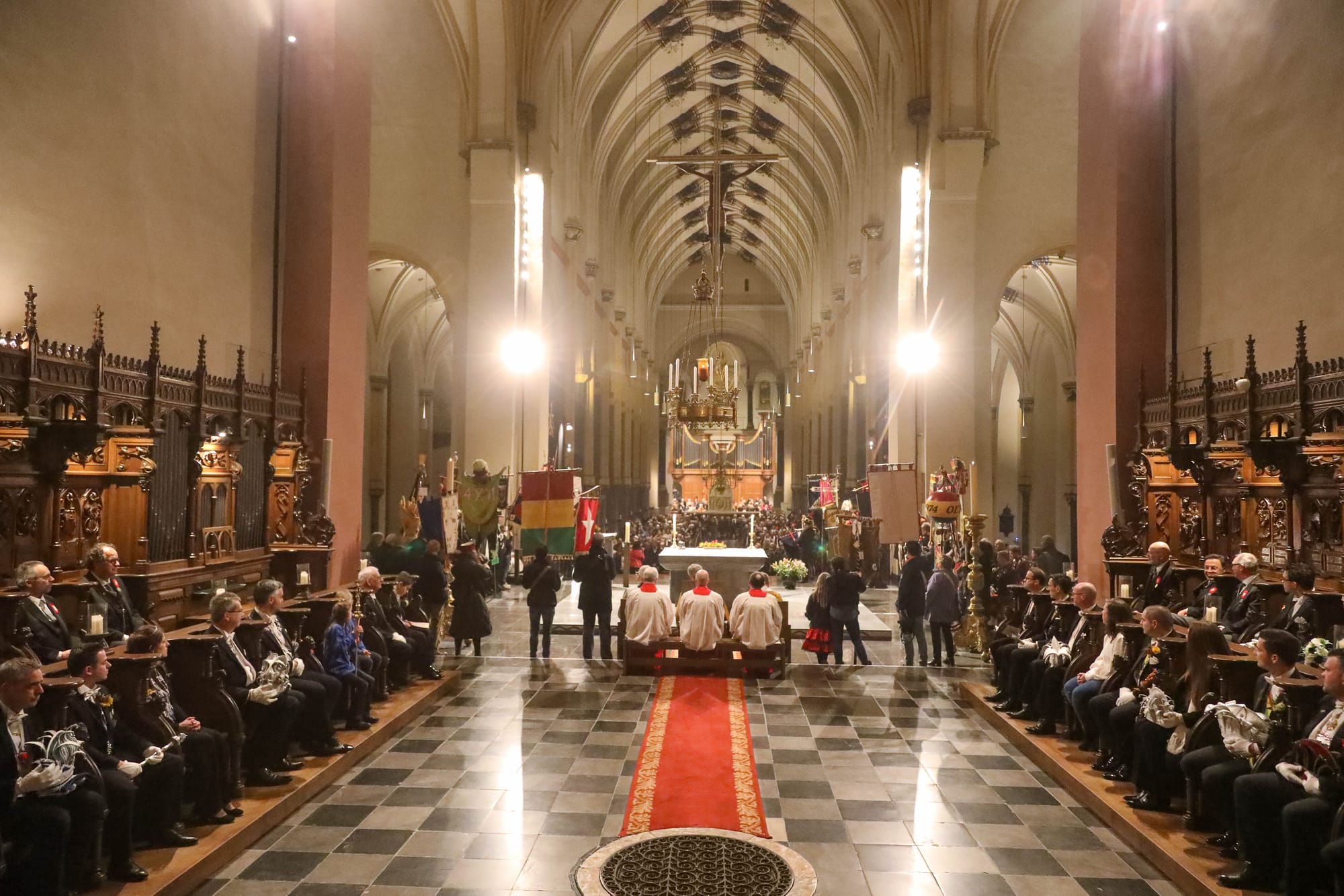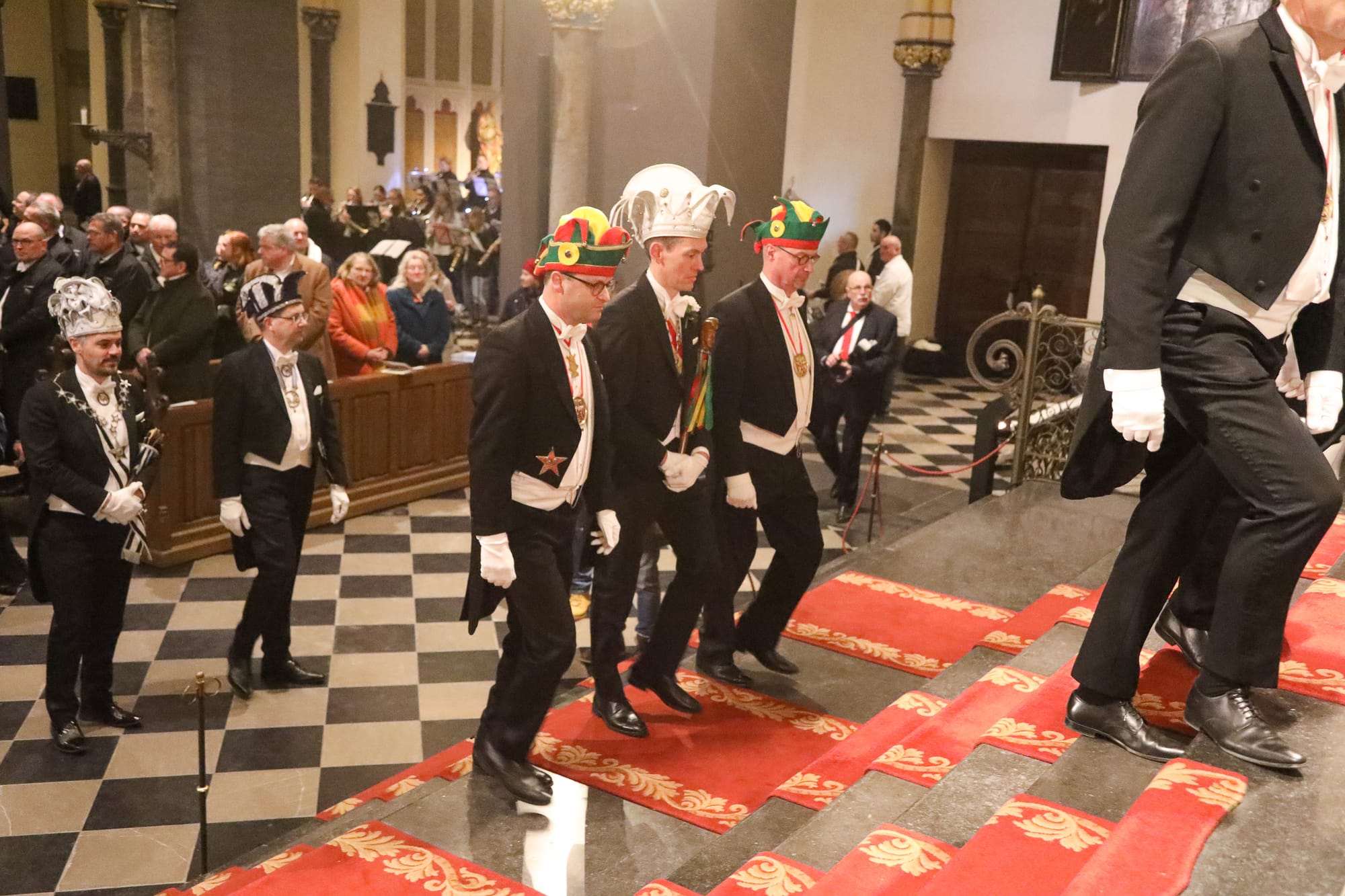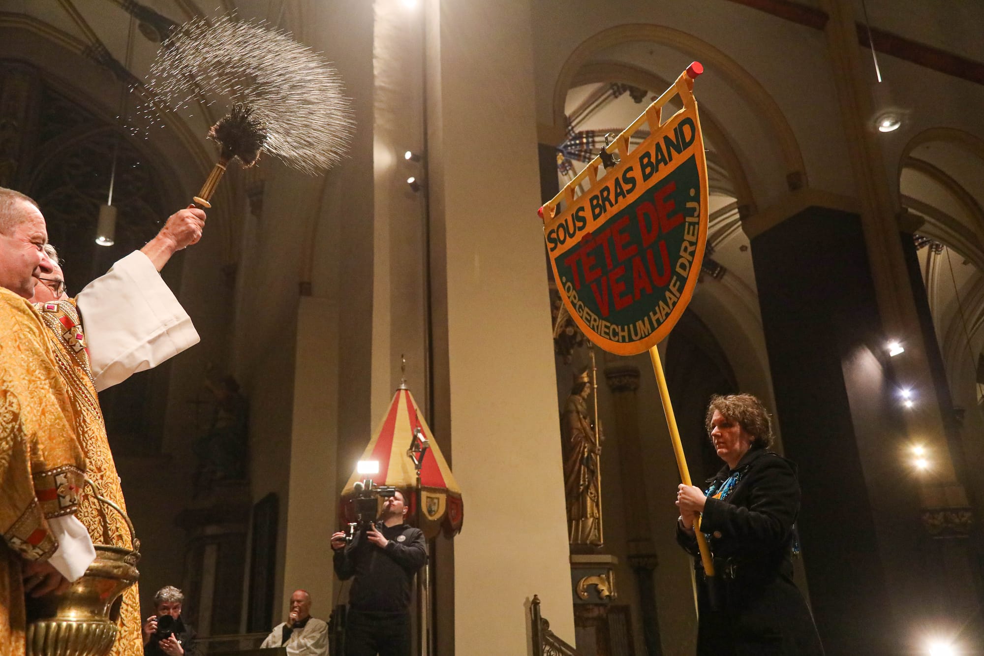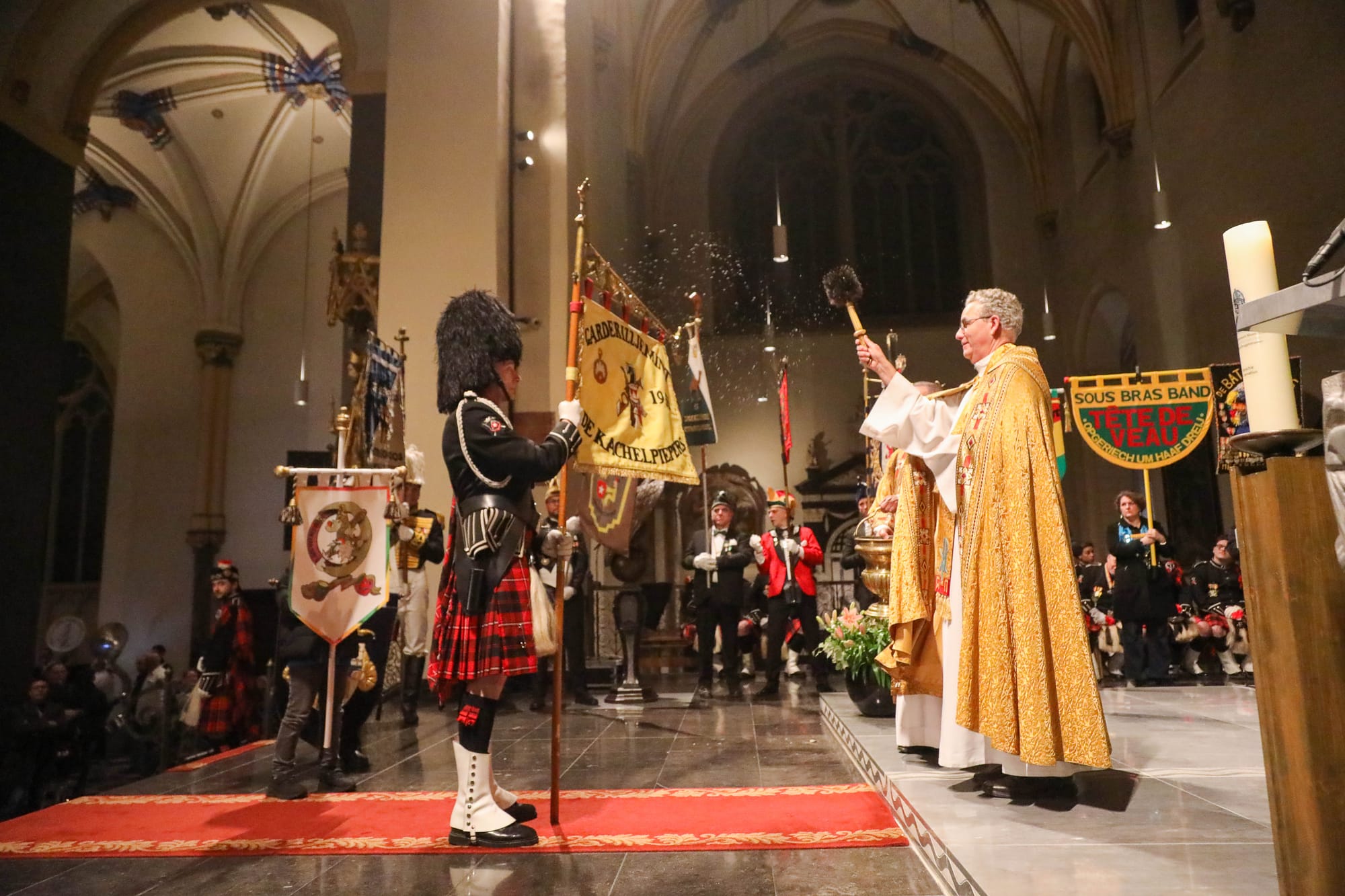 De opkomst van al die Maastrichtse vastelaovendsgezelschappen is zonder overdrijven indrukwekkend. Net zo zeer de anderhalf uur dat al die veendeldregers op het altaar in het gelid staan. Dat deken John Dautzenberg bij dit soort gelegenheden de juiste man op de juiste plaats is, dat bewees hij ook woensdagavond. Met zijn Kirchraojse tongval of woorden lukt het hem zonder inspanning ook een Maastrichtenaar te zijn, zo u wilt: eine vaan us.