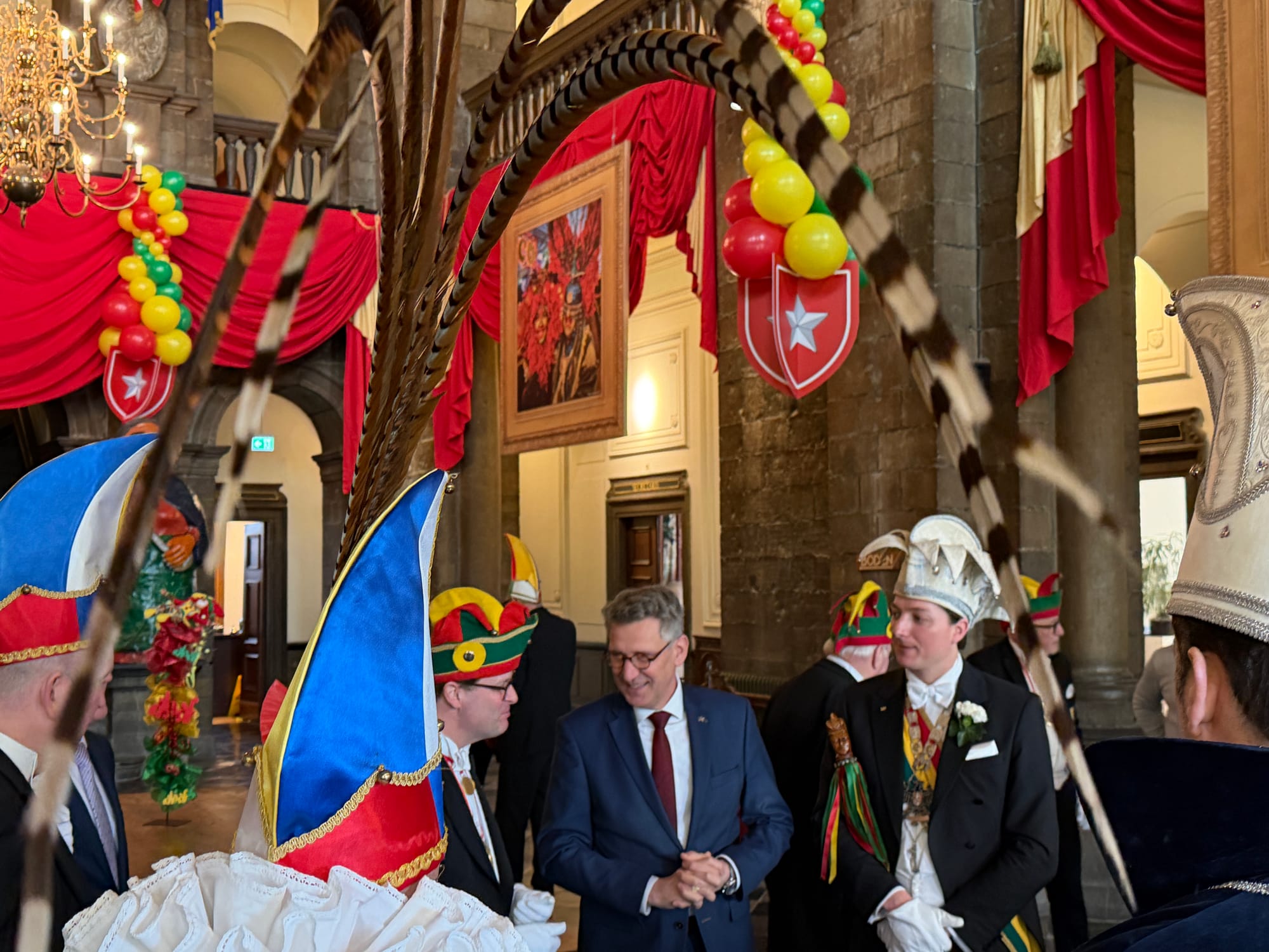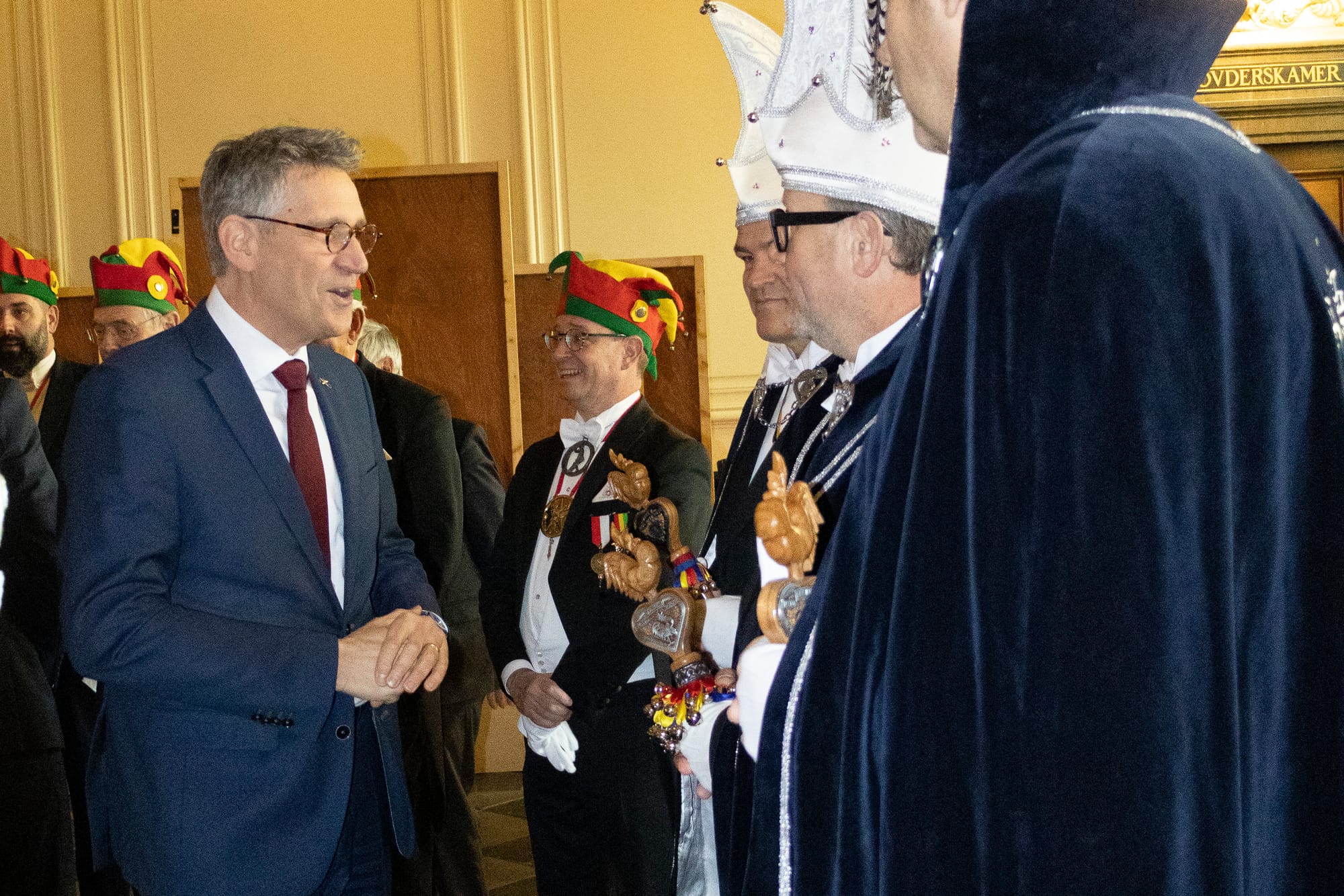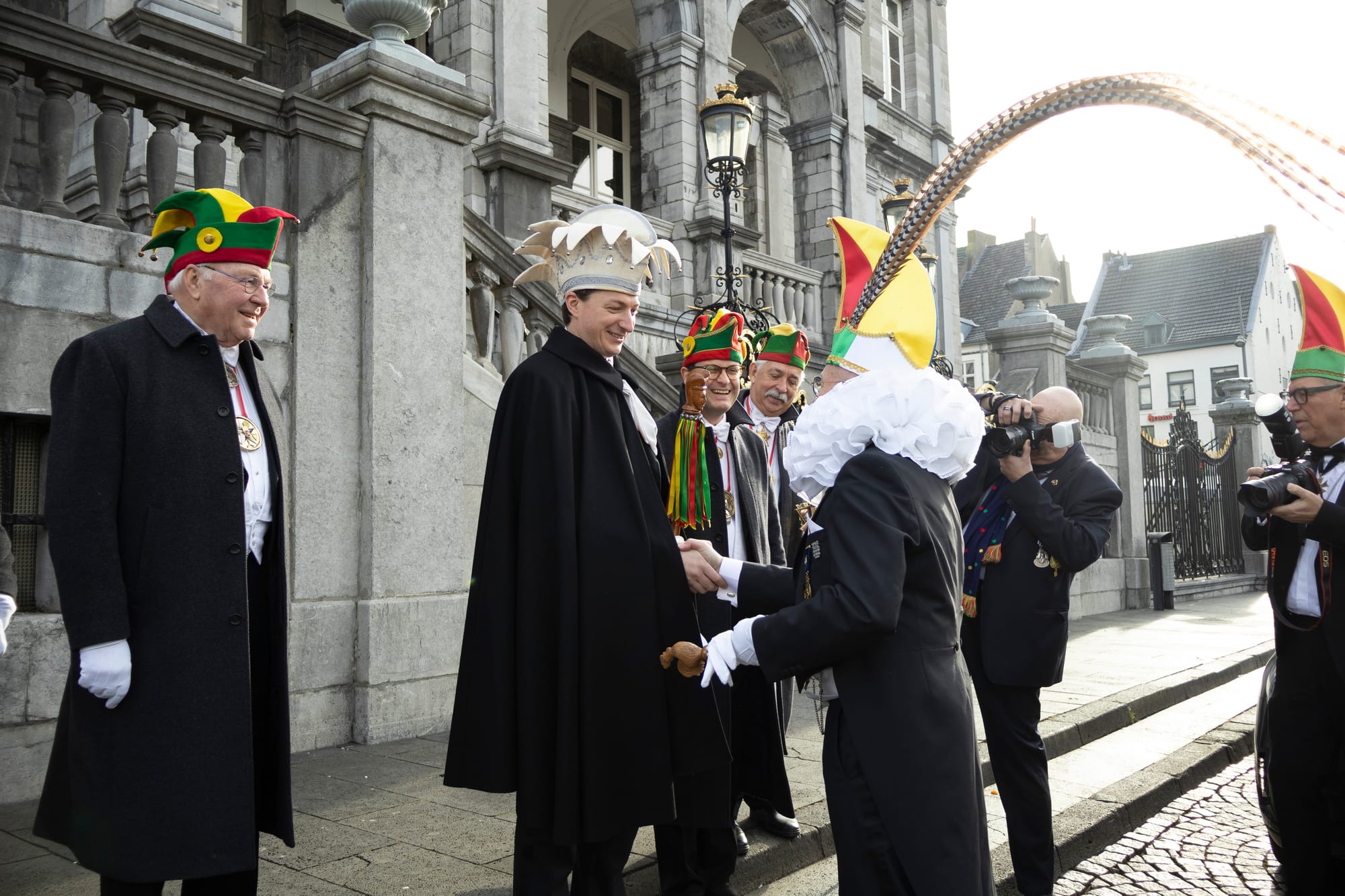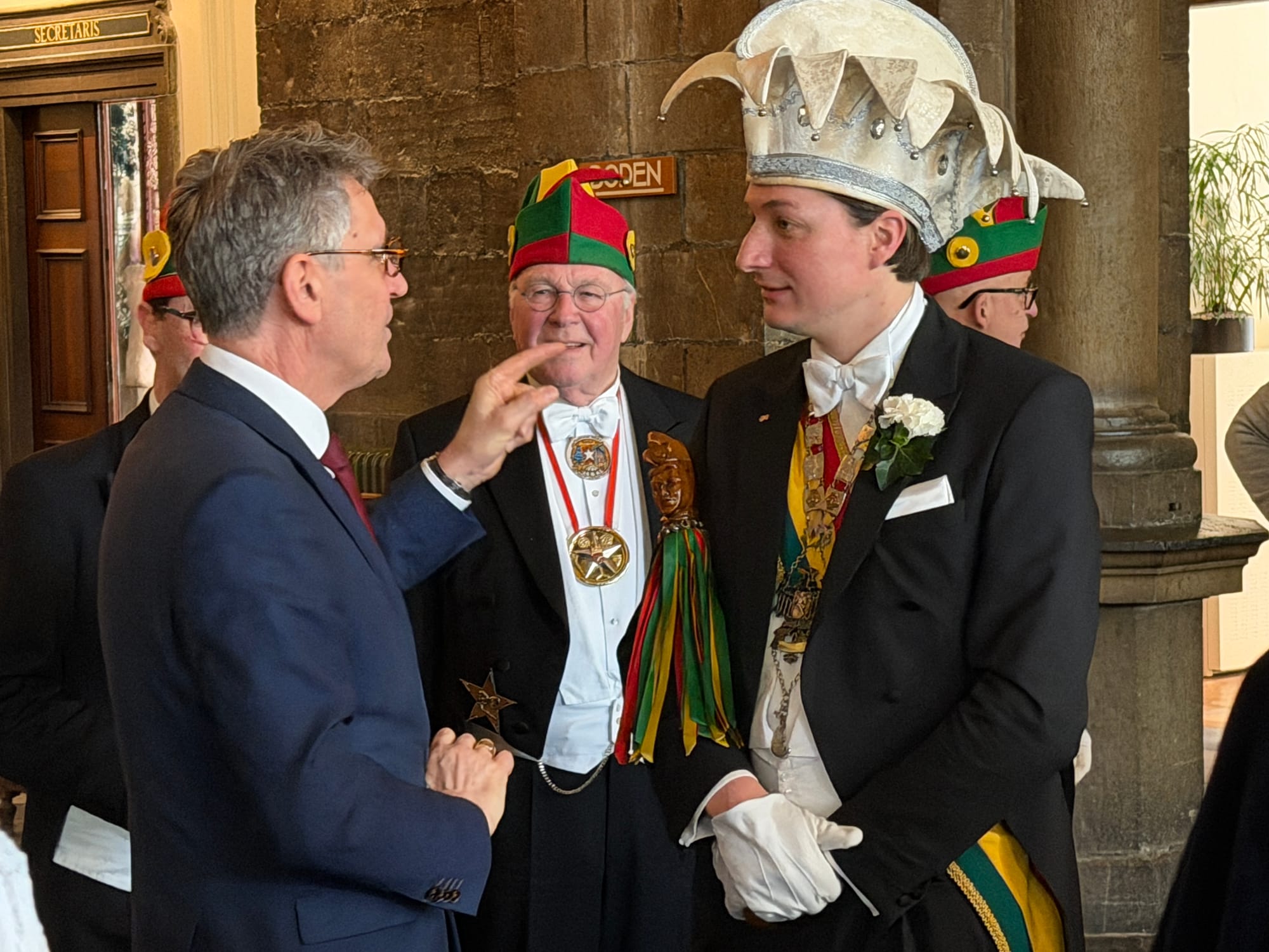 Een delegatie van De Tempeleers en burgemeester Wim Hillenaar hebben maandagochtend een delegatie van carnavalsvereniging De Jocus uit Venlo en burgemeester Antoin Scholten ontvangen in het stadhuis. Beide verenigingen bezoeken elkaar jaarlijks, om en om zijn Maastricht en Venlo gastheer.