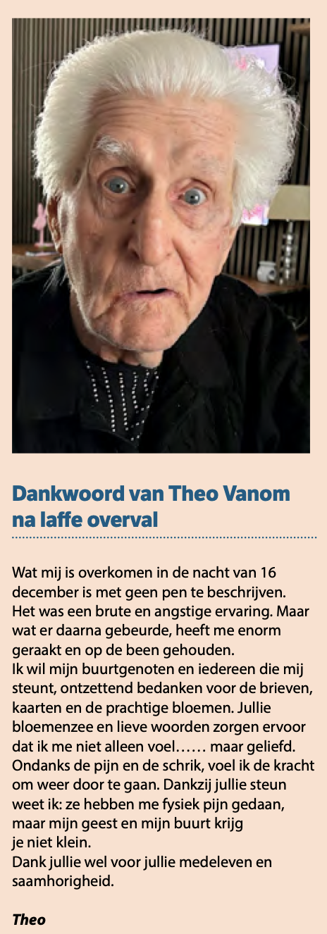 De in zijn woning met veel geweld overvallen Theo Vanom uit Limmel heeft in Buurtpraot Limmel een mooi dankwoord geplaatst.