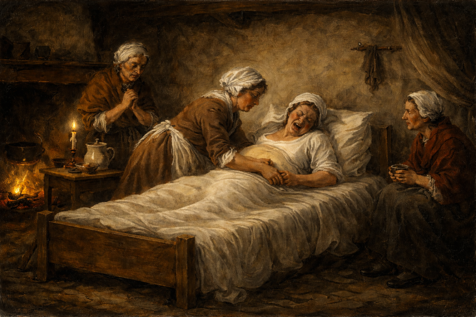 Of tijdens de bevalling van Catharina Maesen een vroedvrouw aanwezig was, wordt nergens vermeld. Eén van de in Maastricht werkzame vroedvrouwen was Anna Dorothea Holthuijsen, echtgenote van Nicolaes Raad. Anna Dorothea was geen echte vroedvrouw. Zonder officiële aanstelling was zij zich vroedvrouw gaan noemen en assisteerde zij bij bevallingen. In juli 1744 werd zij opgetrommeld om te assisteren bij de bevalling van Barbara Buske, echtgenote van de soldaat Arnold van Ham. Vlak nadat het kind ter wereld was gekomen, ging het gruwelijk mis omdat Anna Dorothea geen onderscheid wist te maken tussen de placenta en de “lijffmoeder” (baarmoeder). Per ongeluk knipte Anna Dorothea in de baarmoeder toen zij de navelstreng wilde afknippen. Barbara Buske kreeg vervolgens stuiptrekkingen en raakte meerdere keren buiten bewustzijn. Uiteindelijk was zij door de “grove en ongeoorlofde onweetentheijd” van Anna Dorothea Holthuijsen overleden. Op 16 december 1744 besloot het Brabants Hooggerecht de illegale vroedvrouw voor eeuwig te verbannen uit de stad.