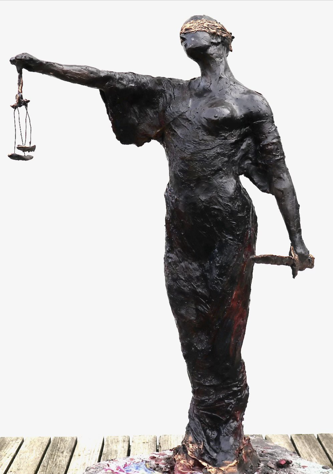 Om nog even bij het gerechtsgebouw te blijven: daar moet natuurlijk ook een 'sjieke' vrouwe-justitia voor komen te staan. Met mooie vrouwenfiguren hebben we in Maastricht natuurlijk genoeg ervaring. We hoeven de naam niets eens te noemen van Wil van der Laan. God schiep de mens, maar Wil schiep de prachtige stadsengel die de aannemer van de A2-tunnel als dank aan de stad heeft geschonken. Die engel staat notabene al aan de Groene Loper.