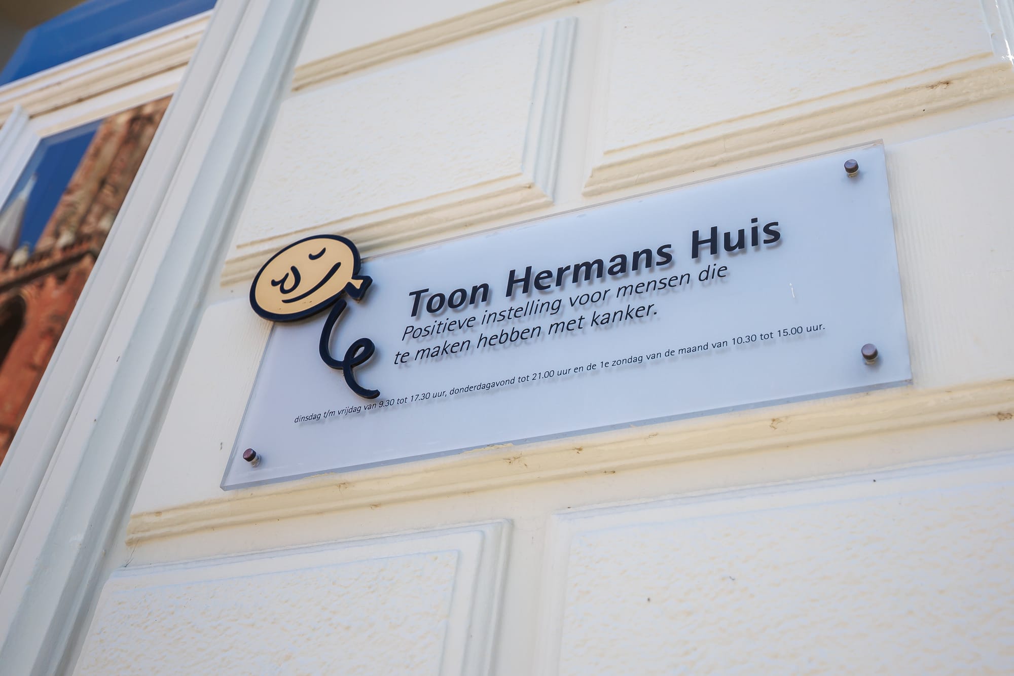 Het jubileum dat onder de naam Toon betrokkenheid gevierd wordt, staat in het teken van het breed kenbaar maken van het Toon Hermans Huis onder de inwoners van Maastricht. “Als het om kanker gaat, maken niet-wetende mensen vaak letterlijk een bochtje om ons pand heen. Dus we moeten veel meer vertellen wat het Toon Hermans Huis is. Iedereen is bij ons welkom en je kunt hier zonder afspraak naar binnen lopen.” Dat de deur altijd open staat, blijkt wel op het tekstplaatje naast de voordeur: ‘Deur is open’. Niet aanbellen dus, gewoon naar binnen lopen.