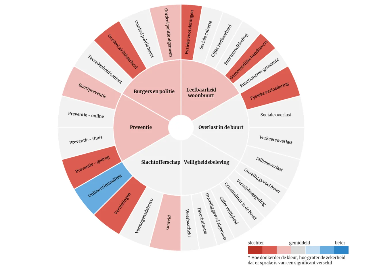 Maastricht is - 2023 vergeleken met twee jaar eerder - weer een stukje onveiliger geworden. Minder gezellig ook. Minder mensen in 2023 in vergelijking met 2021 durven hun huissleutel nog aan de buren te geven. Waar in 2021 van alle huizen 16% voorzien was van een camera, was dat in 2023 al 20%. Dat is een stijging van 25%.