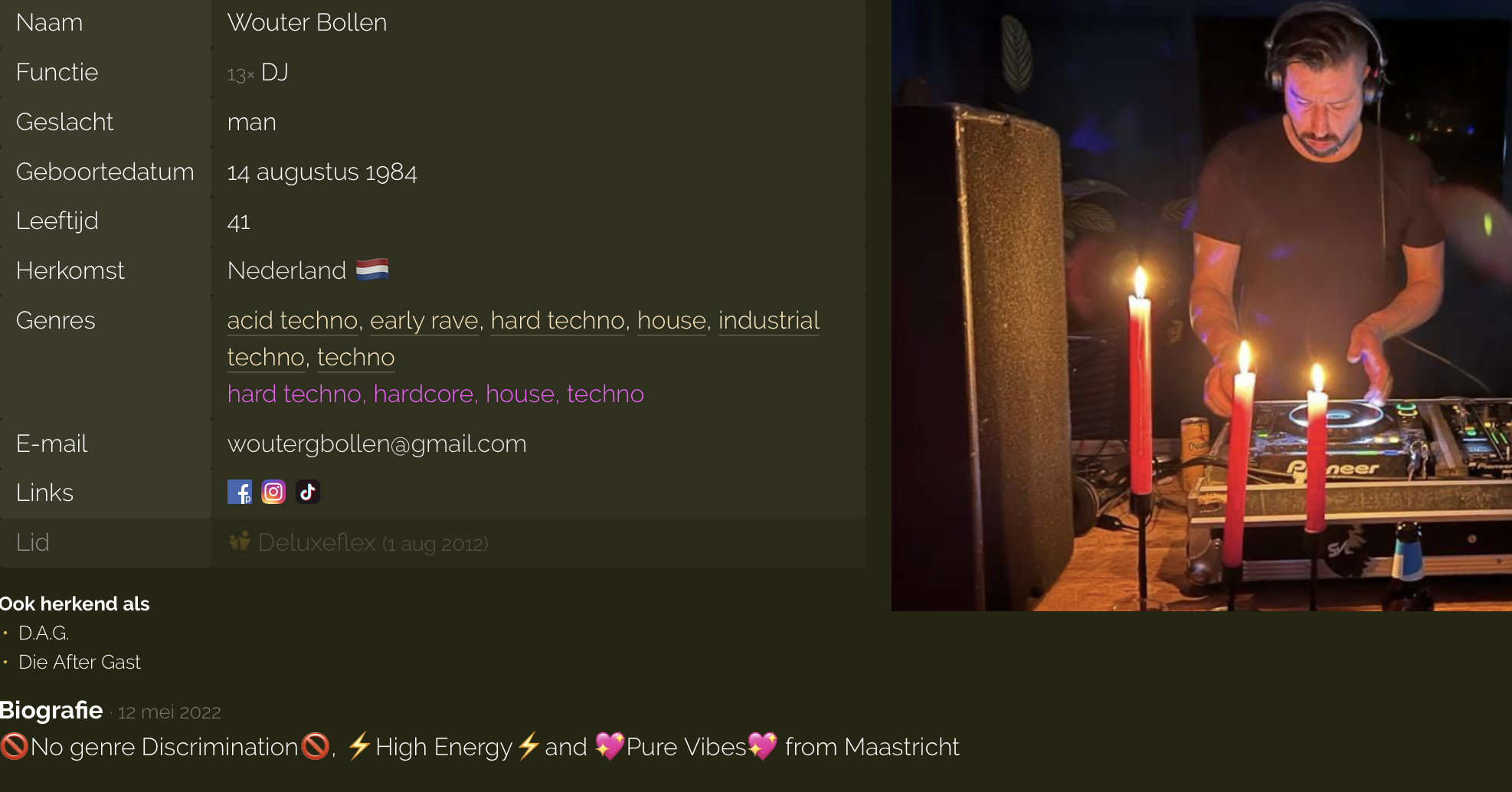 "Wouter het is neet te geluive en neet te bevatte dat ut inins zo stil is. De DJ dea de zaal leet springe en de gangmaker op eder fieske. Bedank veur diene meziek en de gooie tied dea we massaal dankzij diech höbbe gehad. Mestreech zal diech misse achter de draaitofels. Rös zach leeve."