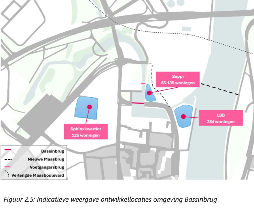 Daar komt nog bij dat er zo ongeveer aan en naast het Bassin in het gebied nog vele honderden woningen al op de tekentafel liggen: The M (284), Het Sphinxkwartier (225) en op het terrein Sappi-Zuid (85-135).