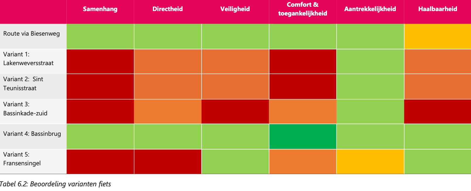 Om het Bassin/Sphinxkwartier goed, comfortabel, aantrekkelijk, veilig en logisch te dooraderen voor voetgangers en fietsers, vallen alle denkbare alternatieven voor een nieuwe Bassinbrug in het gebied één voor één af. Voetgangers en fietsverkeer afwikkelen via de De Lakenweversstraat, de Sint Teunisstraat, de lage Bassinkade, de hoge Bassinkade en de Franssensingel: er zitten aan al die opties te veel nadelen en zelfs onmogelijkheden.