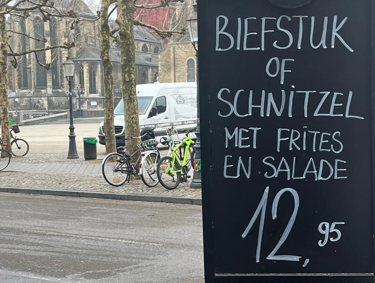 Gerards Weekdeal, een stukje verderop, is een Steak de Paris van 200 gram met salade en frites voor 13,95 euro. Normaal kost dit gerecht bij restaurant Gerard 23 euro. Dezelfde zaak biedt bij een lunch van 11,95 euro zelfs gratis een kop koffie of thee aan. Elders op het Vrijthof worden vergelijkbare menu's ook voor onder de 15 euro aangeboden.
